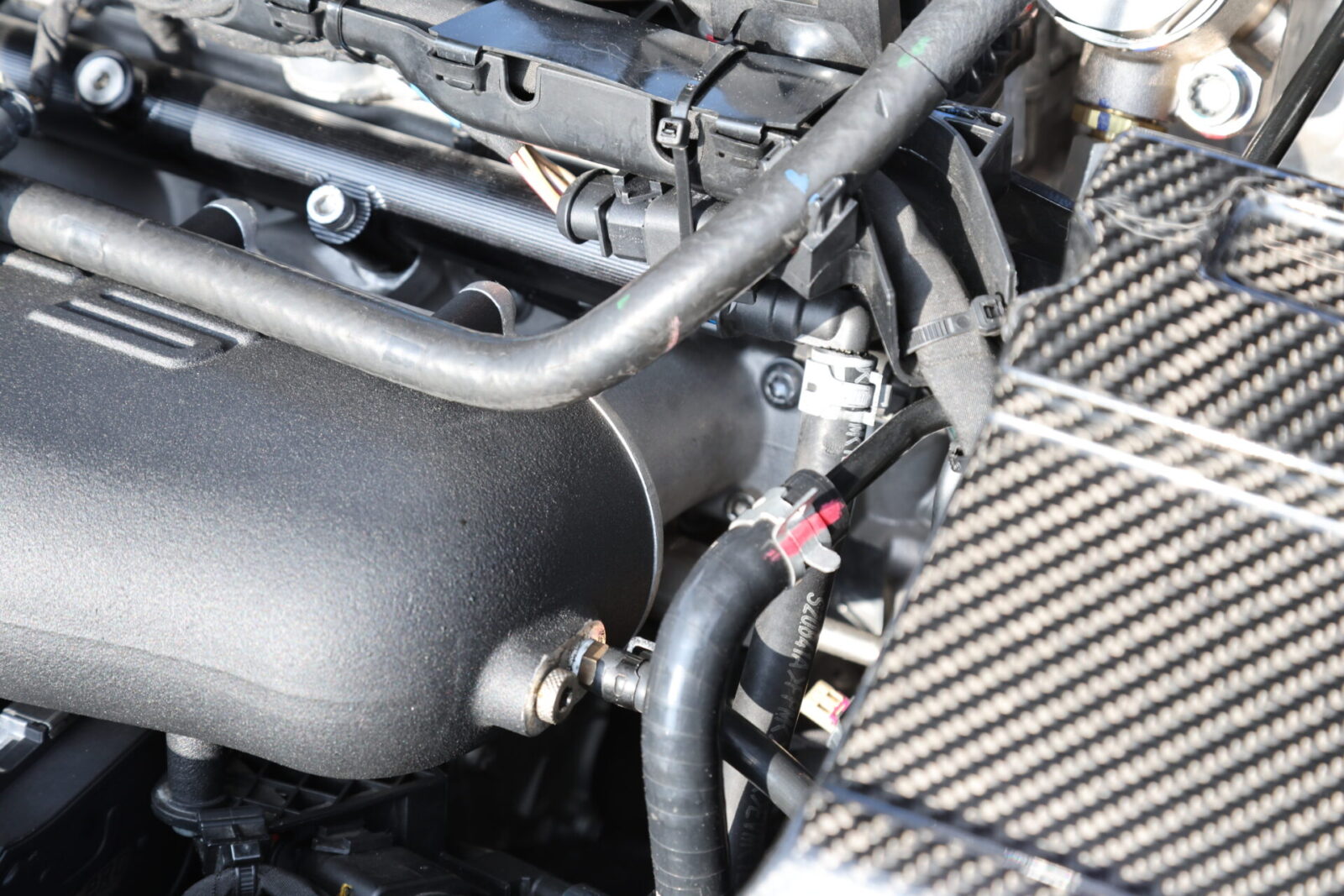 而這部車在許多大改車上都會看到的水噴射系統部分,林木自動車採用了創新作法,他們利用後期Gen3引擎上廢除的進氣歧管噴油嘴位置,重新加裝甲醇專用HS-V3電噴系統上去,然後在於後行李廂內裝上WSPORT電噴無刷甲醇專用桶,透過類似傳統噴油嘴注油的架構,將水噴射的注入方式徹底可程式化,使其注入的時機與水量更細膩,如此就能發揮水噴射系統更大的效益。