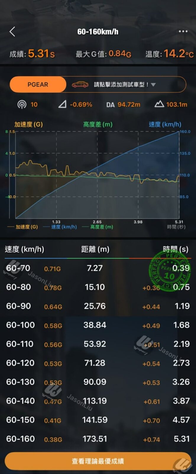 目前這部街車設定的Arteon SB,透過包含引擎與變速箱的硬體改造,與HS軟體調校後,最高增壓值可提高到2.6bar左右,在馬力機上測試出559hp的輪上馬力,換算引擎淨輸出早已突破600hp。100-200km/h透過P-Gear測試後,跑出6.8秒的成績,若是以最常用到的60-160km/h的區間進行測試,時間則可縮短到5.31秒。筆者在市區短暫試駕時,也發現這部車的加速真的快,2檔車速約50km/h時全油門加速,在身體還沒反應過來時,就已換到4檔,速度早已破120km/h,身體感受到的G力不亞於大馬力電車的感覺。