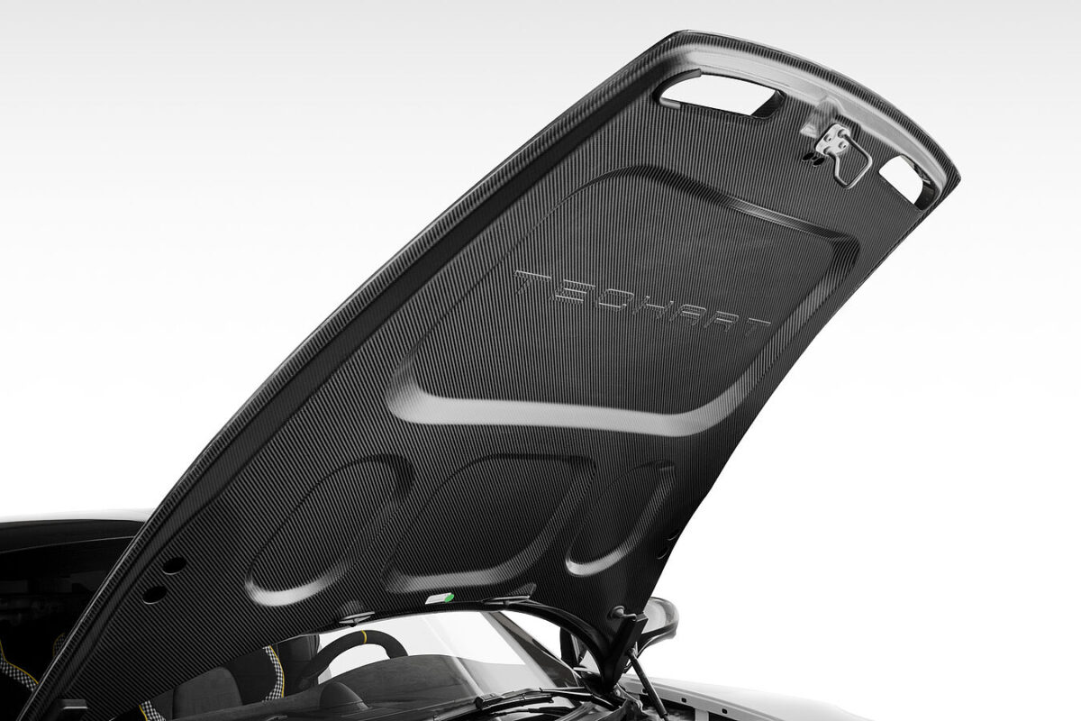 而針對此車,在外觀部分TechArt推出了相當完整的空力套件,首先是車頭前保桿部分,採用整組更換為TechArt部品的方式來強化,這組TechArt前保桿除了具備開口更大的氣壩設計外,適度點綴的碳纖維面積,也能在保有街車質感下,獲得更好的性能氣息,而獨特的碳纖維行李廂蓋前緣,則有著GT3/GT2車系才有的散熱孔,讓車頭扮相更加顯眼。