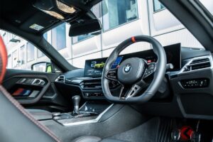 為了達到極致輕量化的效果,M4 CSL搭載了碳纖維車頂、碳纖維行李廂蓋、碳纖維引擎蓋、碳纖維陶瓷煞車系統、鍛造輪圈(前19/後20吋)、輕量化彈簧、鈦合金排氣尾管、車輛隔音材質減重,並將第二排座椅移除,前座也換上碳纖維桶型座椅,最終減去了109公斤,車重最後來到1651公斤。