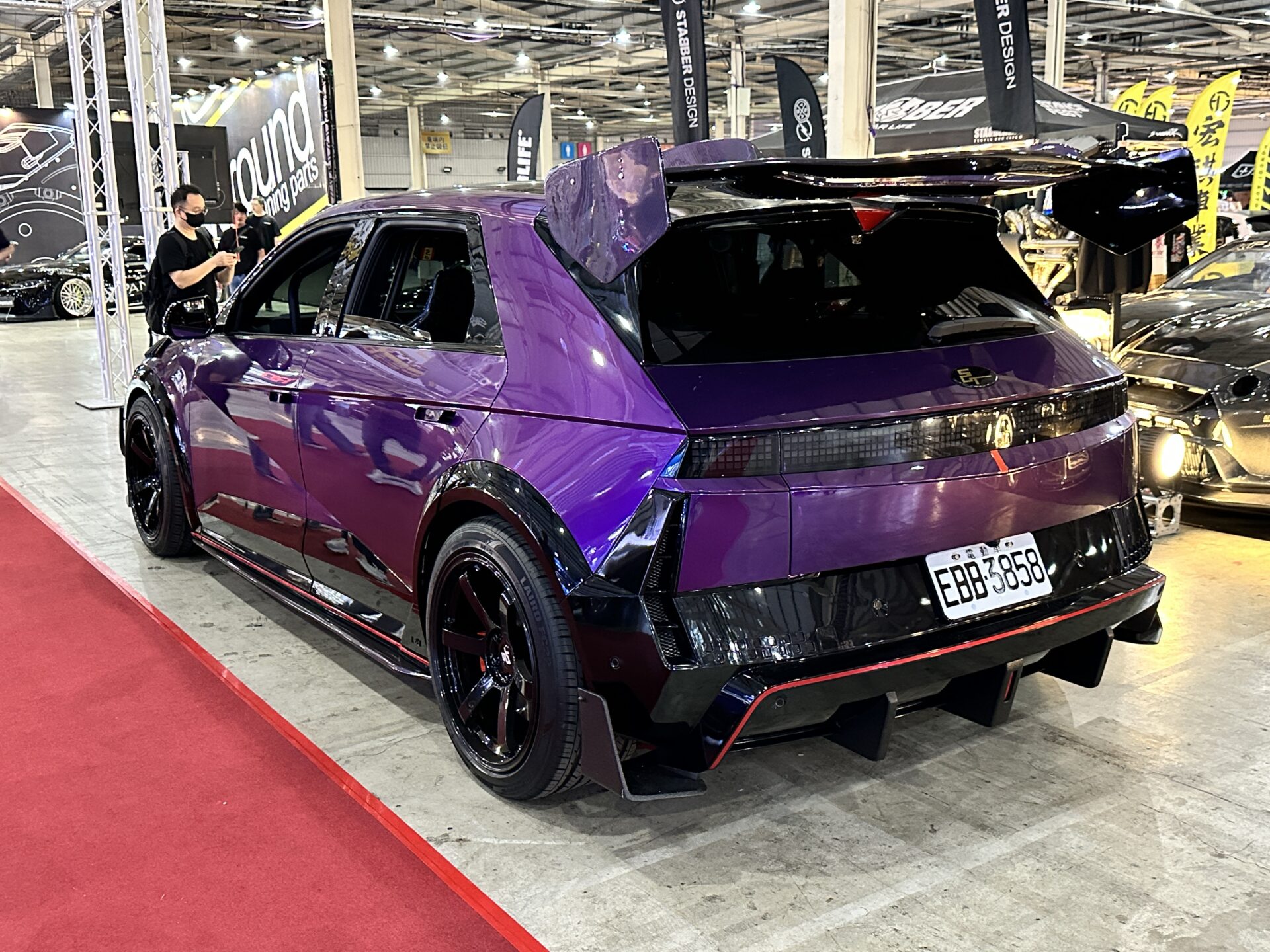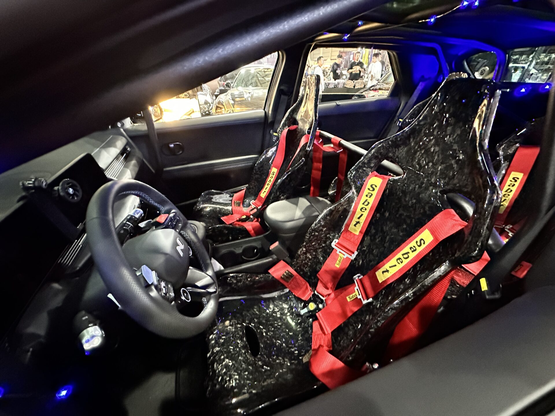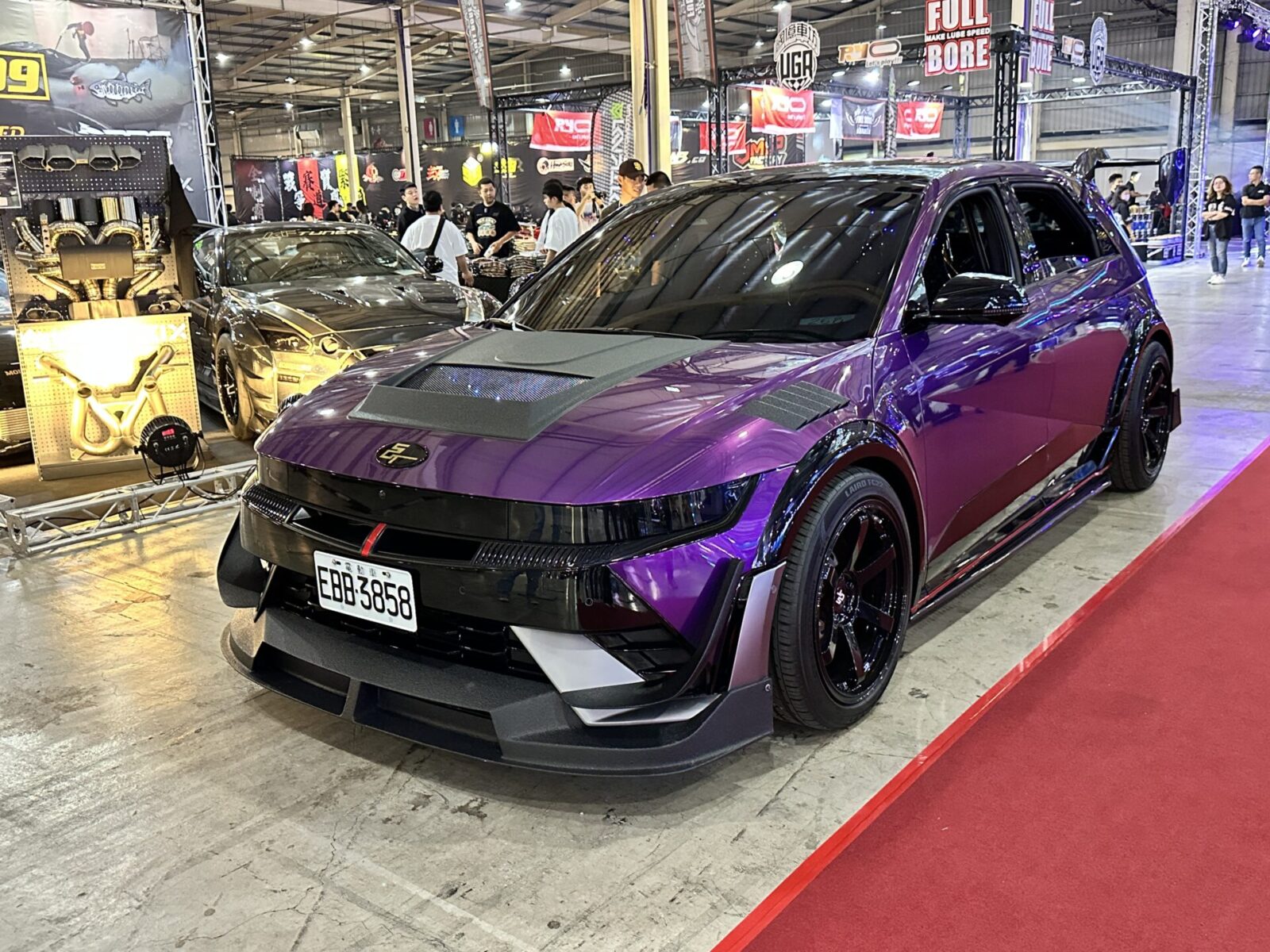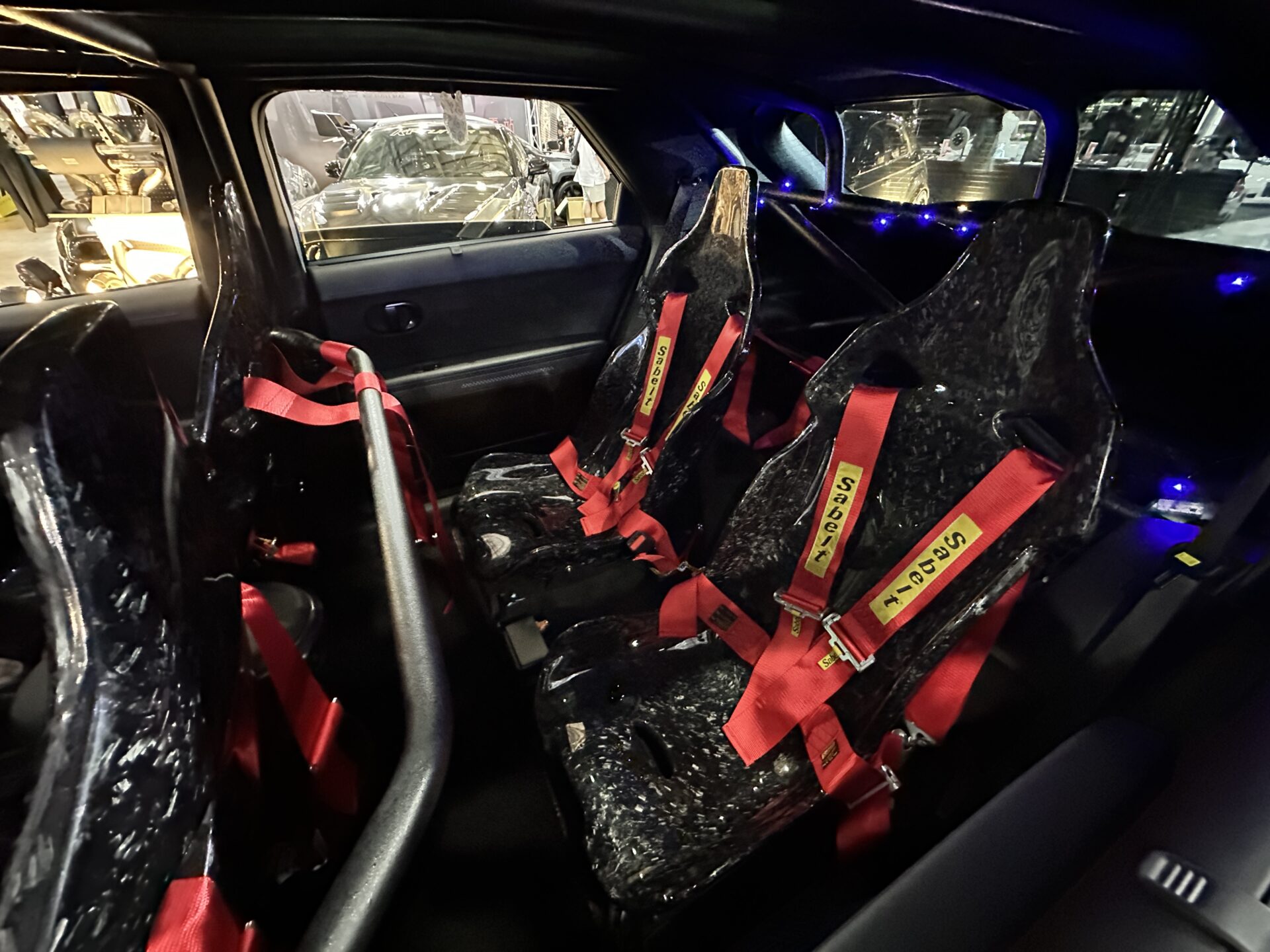 電動車也能改得很有個性,這部以Hyundai Ioniq 5基礎,改造而來的作品,外觀已換上寬大霸氣的套件,內裝則將原廠座椅拆除,換上四張碳纖維椅背,搭配防滾籠後,整部車猶如賽車般呈現在眾人眼前。