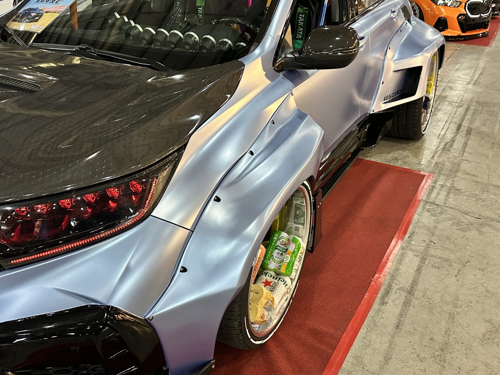 這部堪稱是全場最寬的GR Supra,前後寬體套件採用3D列印方式打造出來,目前車上的套件只是樣品,之後還會再進行翻模與細節處理,同時加裝燈系改裝,讓外型有更不凡的樣貌。
