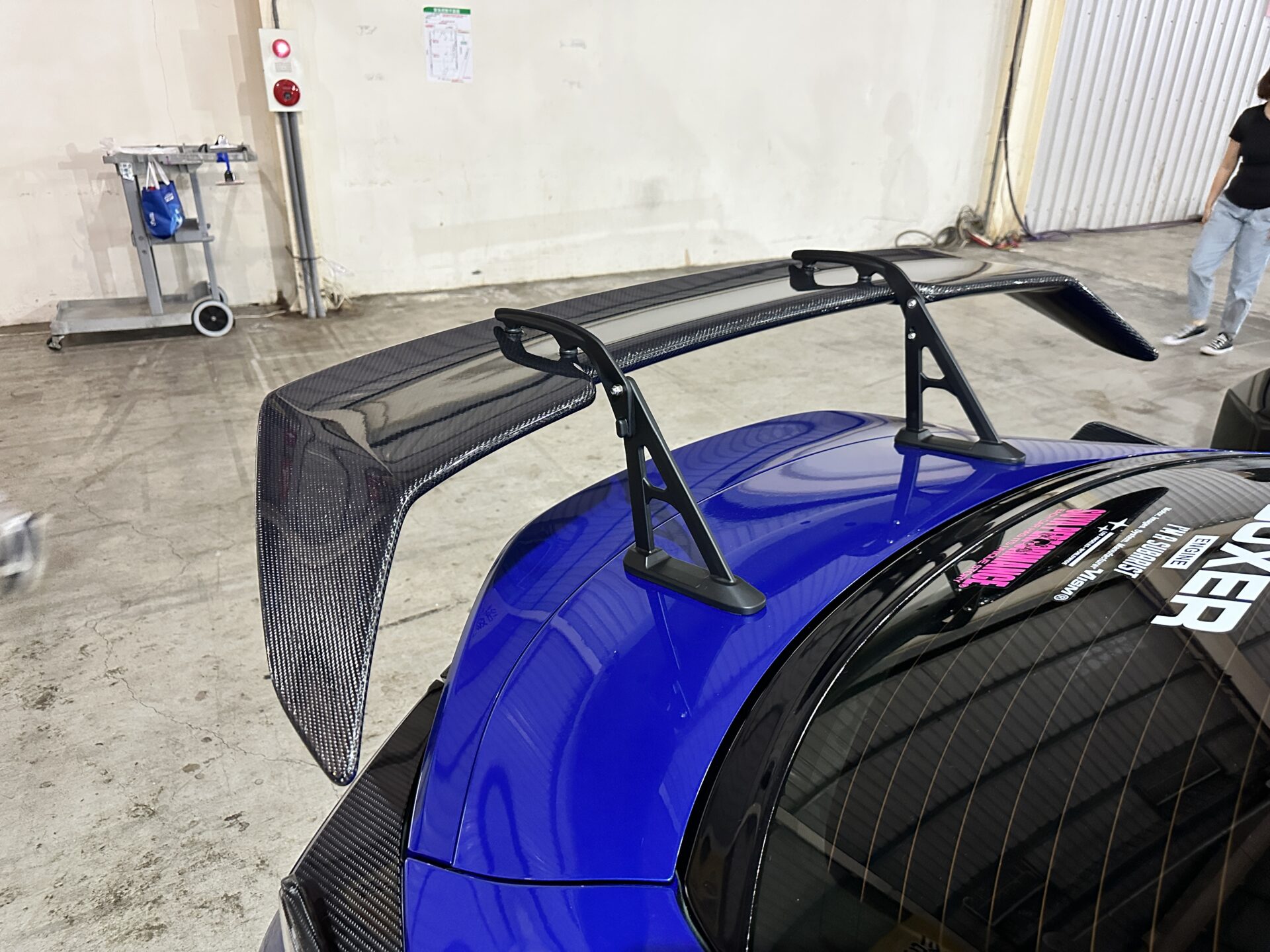 這部新款BRZ應該是空力套件廠商的展示車,因此可以看到外觀有許多鈑件已更換為碳纖維材質,且碳纖維紋路排列整齊,套件密合度也相當優異,是設計成熟的外觀套件,非常適合BRZ/GR 86車主換裝。
