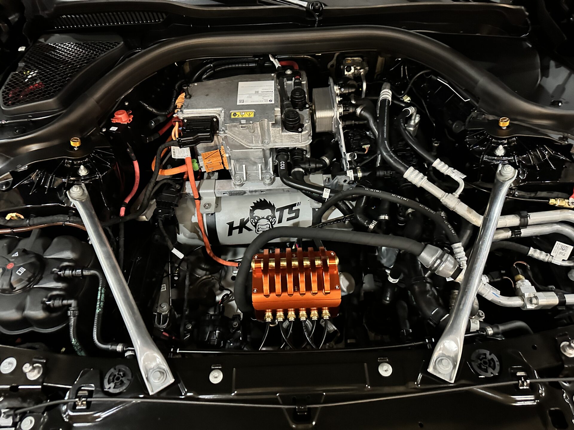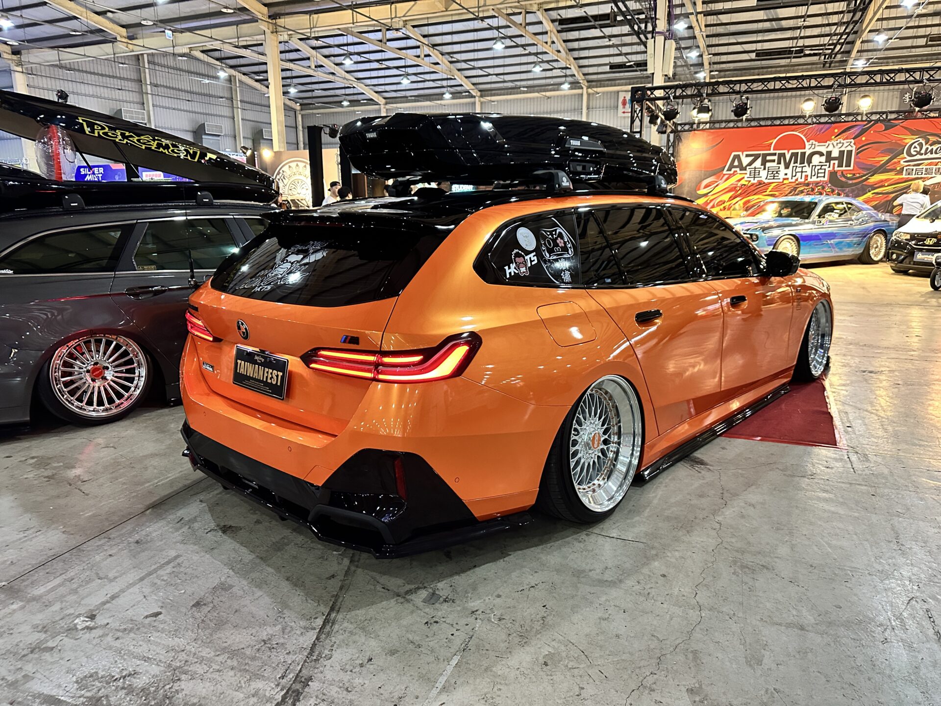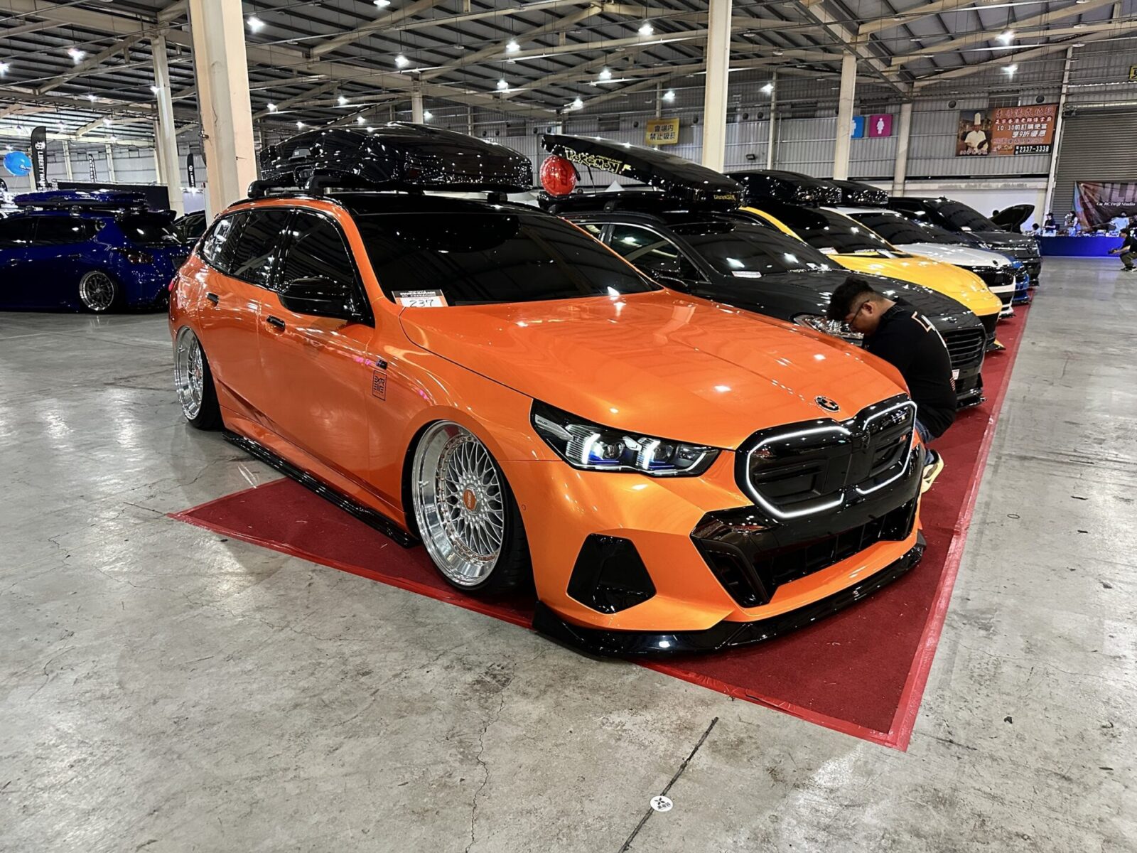這部亮橘色的BMW i5 Touring純電豪華旅行車,是高雄鴻凱國際車業的最新作品,車上已換上Prazis氣壓避震器,搭配19吋轉21吋鋁圈組與亮橘色貼膜後,同樣是場內難以忽視的存在。