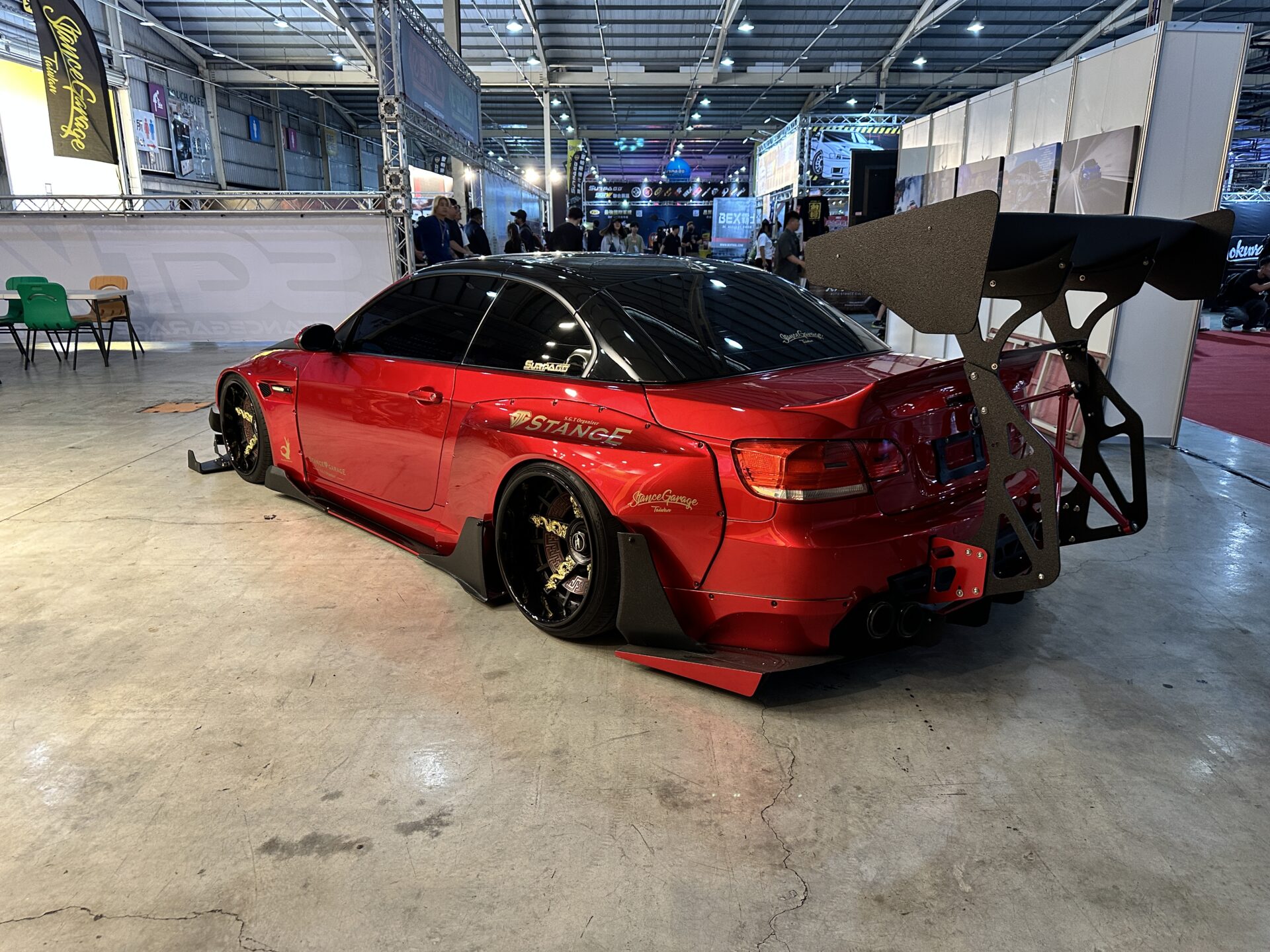 一部街車如果沒有限制,想要天馬行空的把改裝想法投入在愛車上,所呈現出來的樣貌應該就像這部BMW E92一樣,寬體+超大前下擾流+超大尾翼+趴地,除了誇張外,已經找不到什麼形容詞來描述它了。
