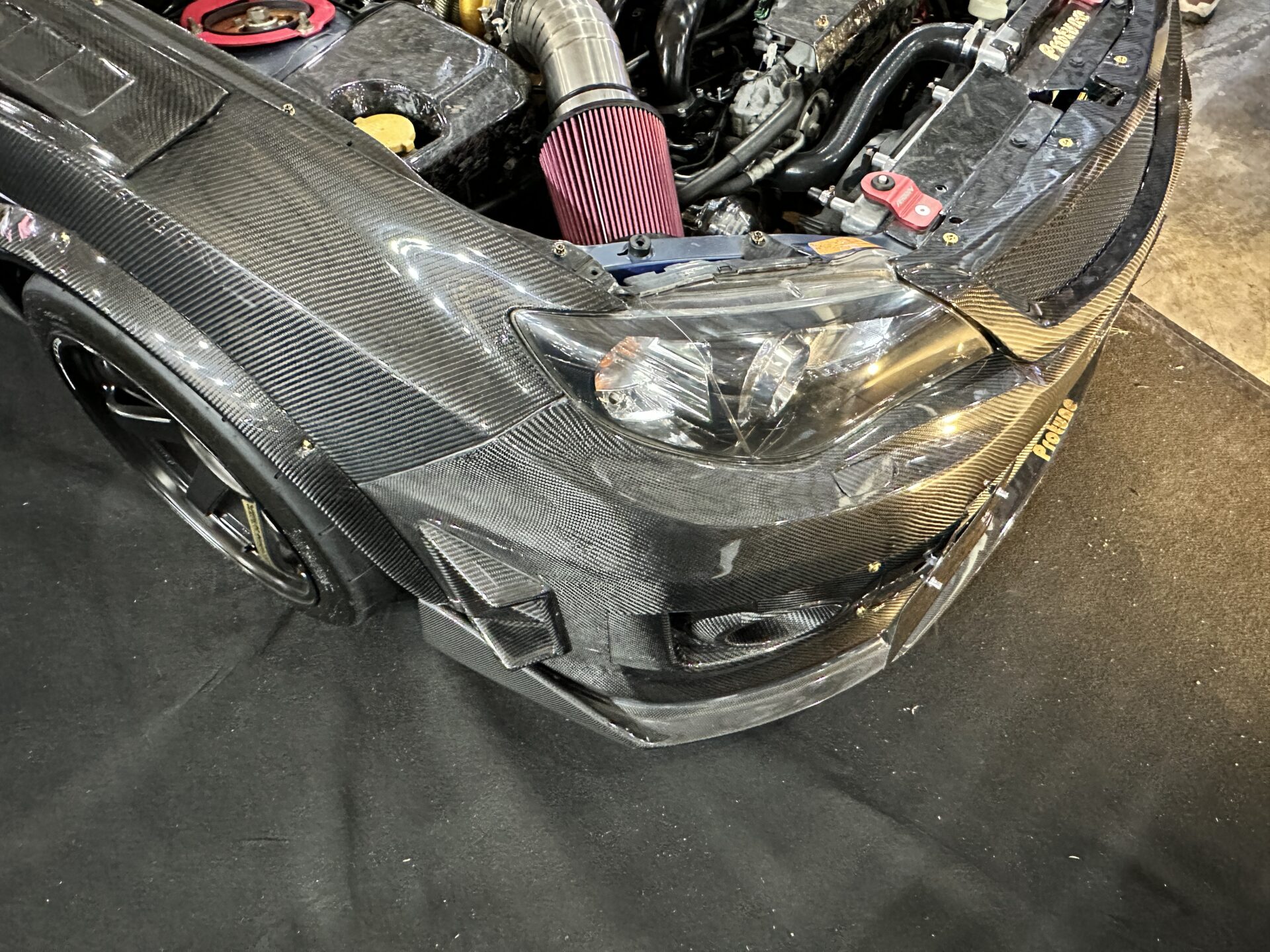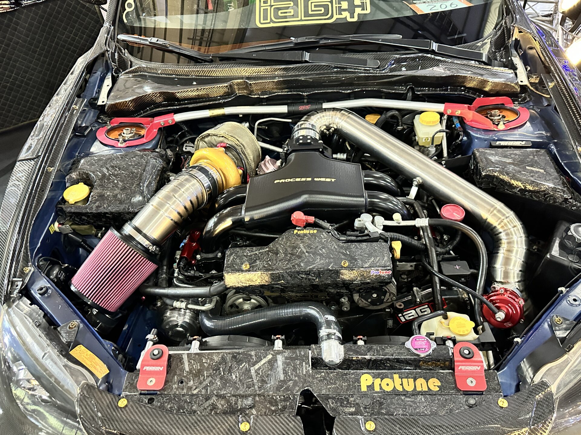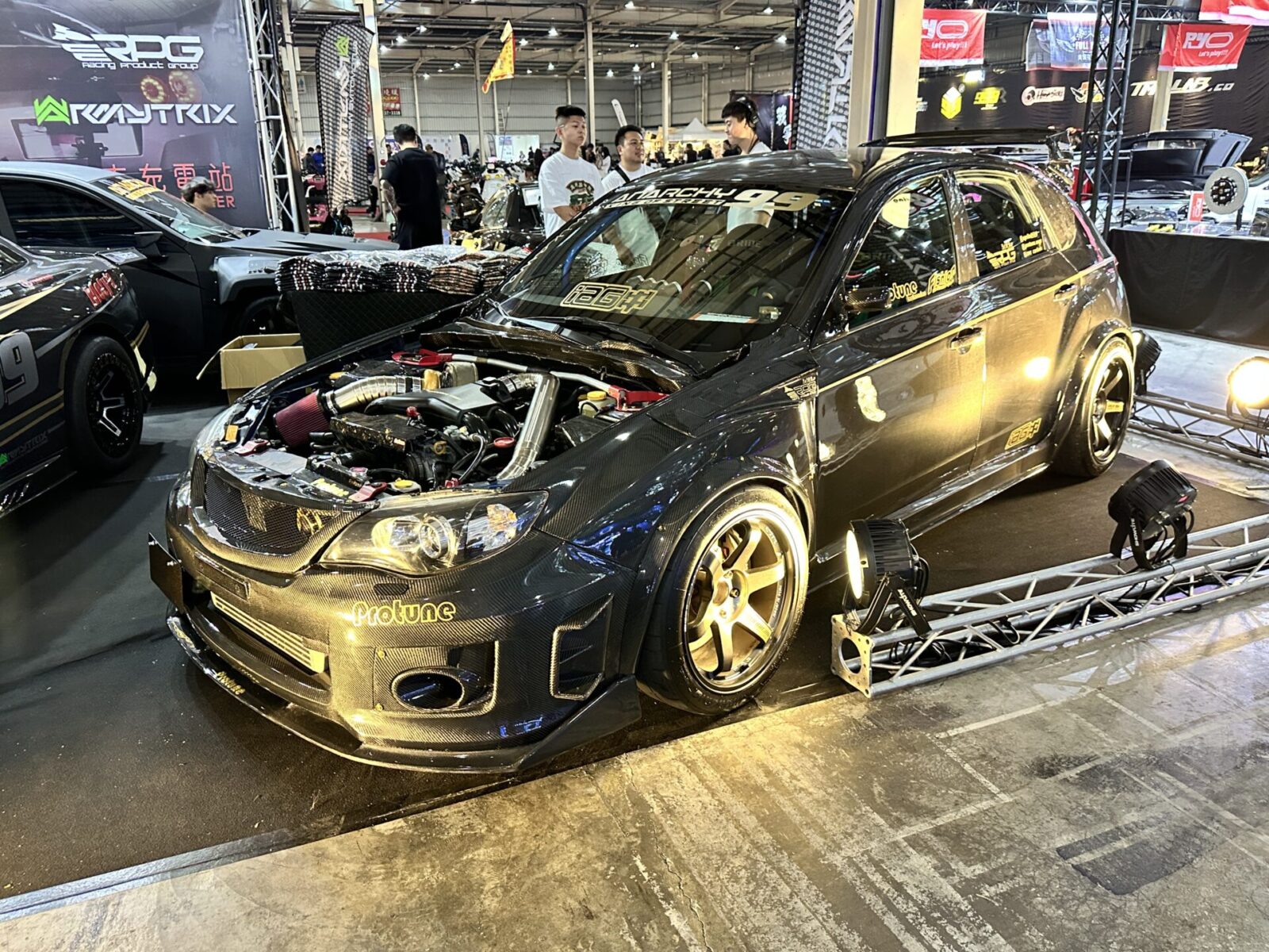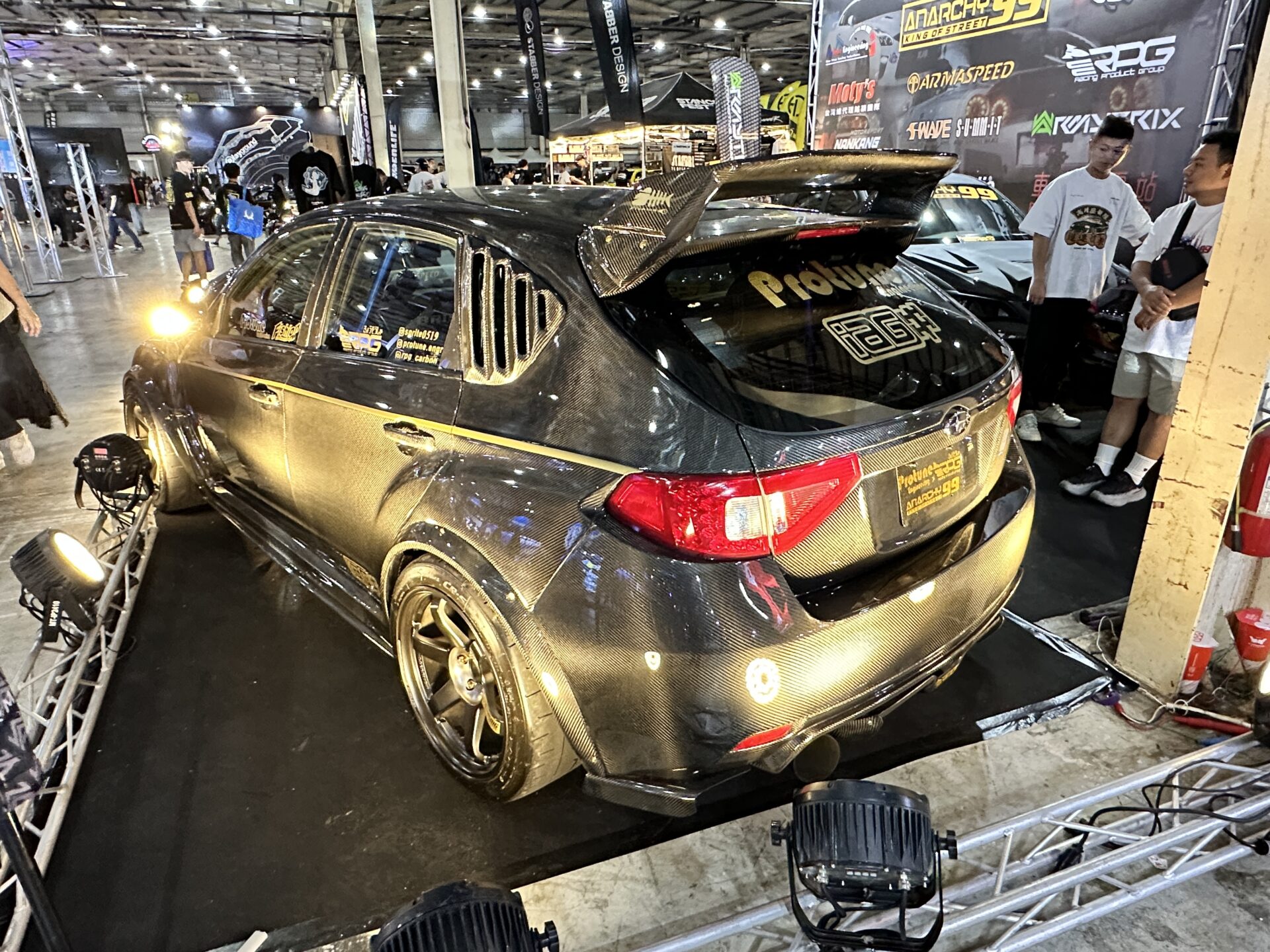 這部Impreza的外鈑件除了車頂、ABC柱與後葉子板外,其餘的部件都已更換碳纖維材質,且還帶些微寬體的線條,動力系統也經過大幅度的強化與改造,堪稱是當天改裝幅度最大的硬皮鯊。