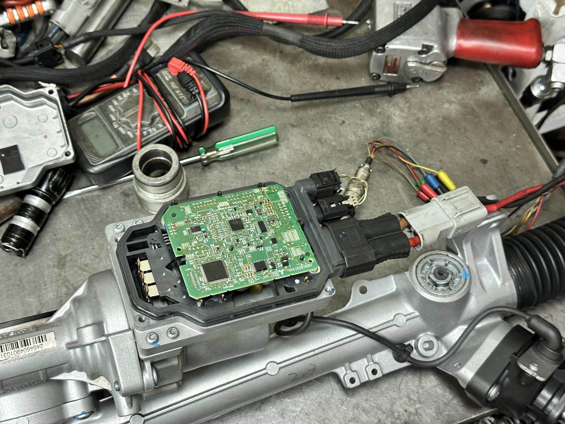 技勇除了會強化內部零件外,他們也會維修電動方向機的控制模組。由於採用電動方向機的車款數量愈來愈多,相較於傳統油壓方向機,前者還設有控制IC模組,就像行車電腦一樣,負責控制電動馬達的啟動時機、往左或右轉動齒輪,甚至與車道置中維持功能連動,這樣才能主動控制方向盤的轉向角度,以維持車輛在車道中間位置。