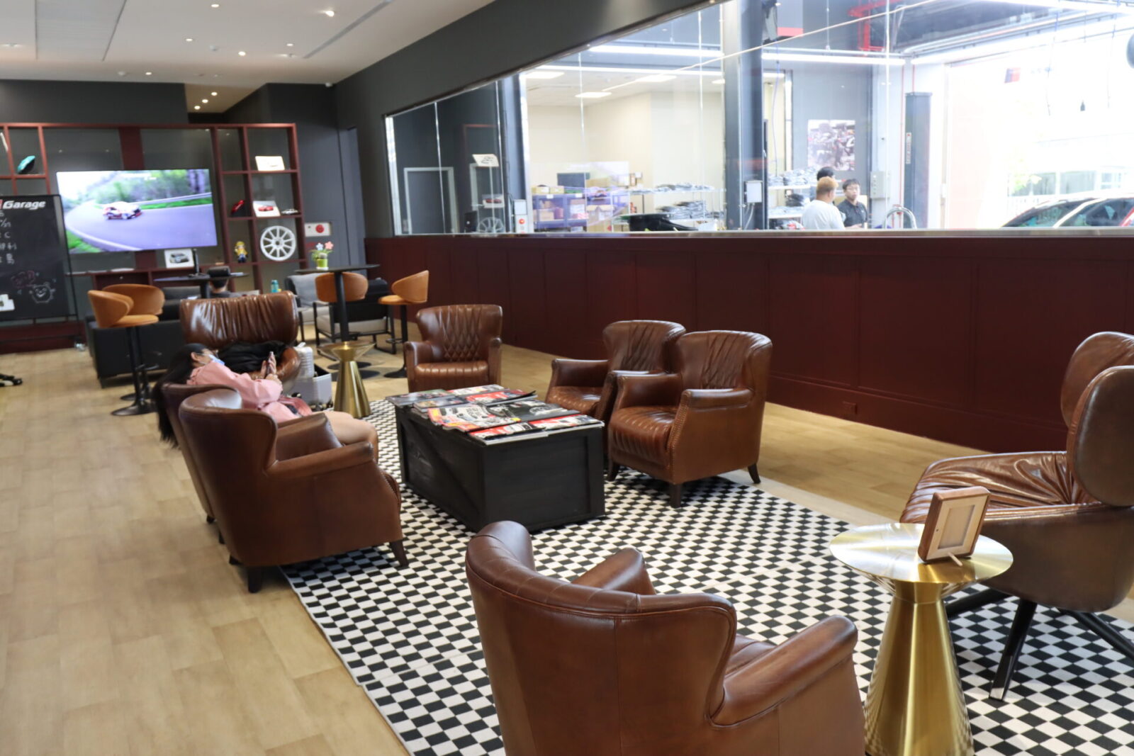 此外,為了讓小小孩也能體驗競賽樂趣,因此店內還有磁力軌道玩具車,一次可提供六位小朋友同場較量,至於大人則可坐上一旁的賽車模擬器,結合PS5遊戲主機、Moza賽車方向盤與GT7賽車遊戲,盡情享受賽車遊戲帶來的競速樂趣。如果您想利用店內舒適寬敞的店內空間,做為平時休閒娛樂與車友交流場所,GR Garage林口也歡迎車友們當作一個休息中繼站,來這裡喝杯咖啡,休息一下再繼續後續行程,這些服務都是一般改裝廠比較無法提供的項目。