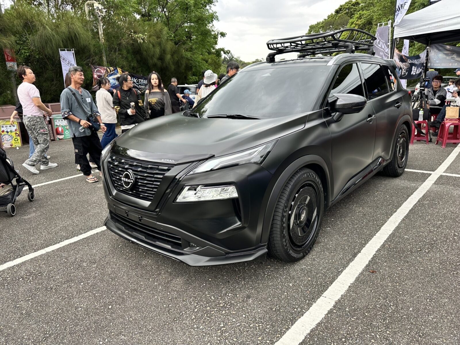 這部全車採用消光黑化塗裝風格的X-Trail e-Power,應該是整場殺氣最兇的作品,前下擾流、前定風翼、後上尾翼等,都採用專車專用套件,搭配Nismo套件與圓盤風格的鍛造21吋輪圈後,散發強烈的個人風格。