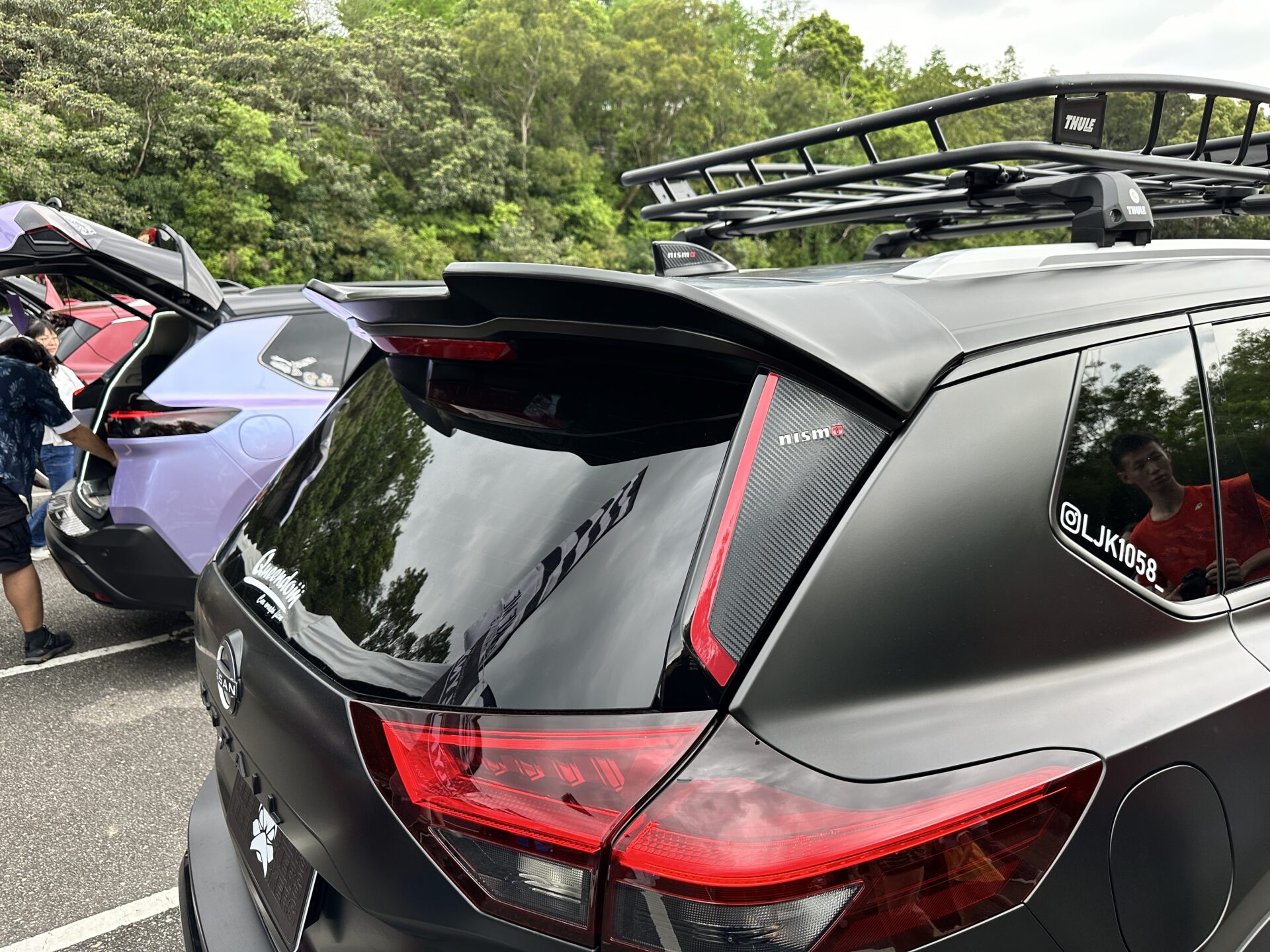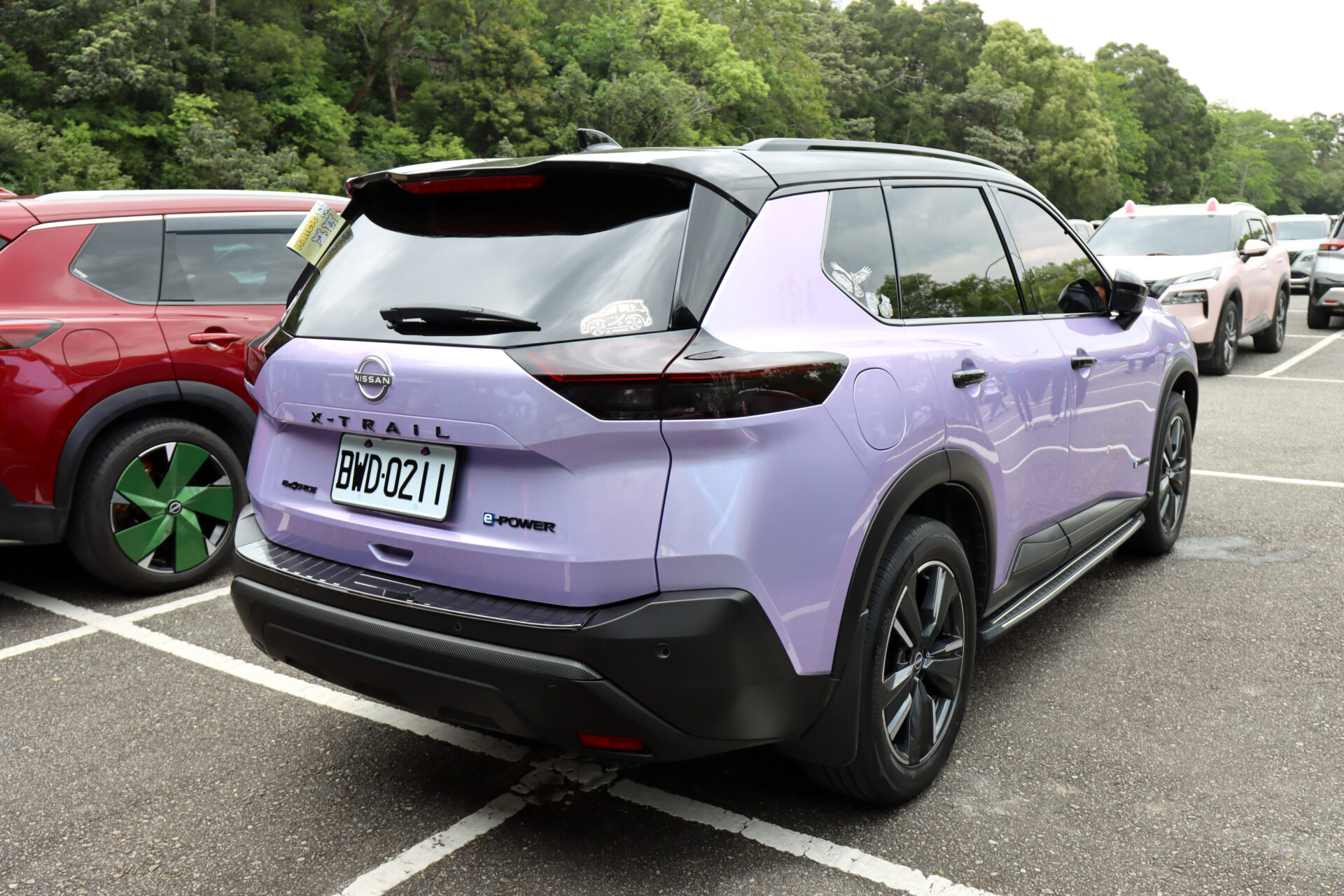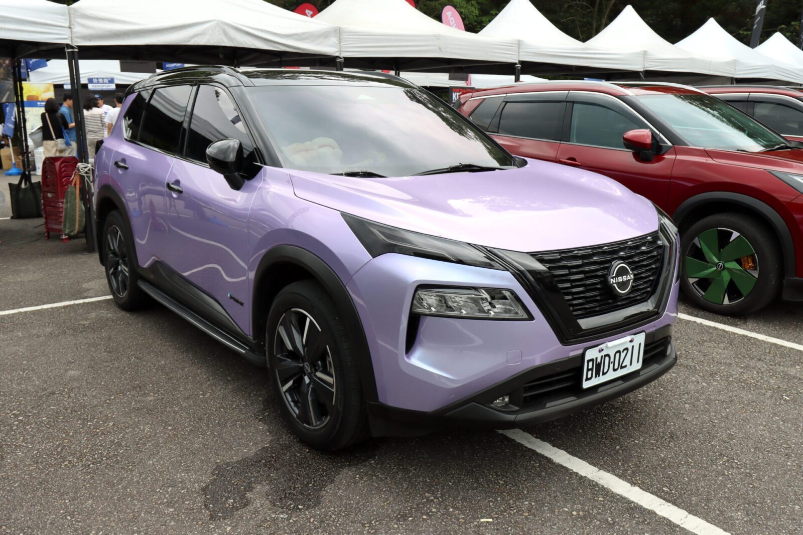 這部紫色車款是活動當天車主票選第一名的改裝作品,嗯~看來X-Trail e-Power車主都很和平,紫色貼膜本身還會因不同角度而變色,確實有著極高的視覺辨識度。