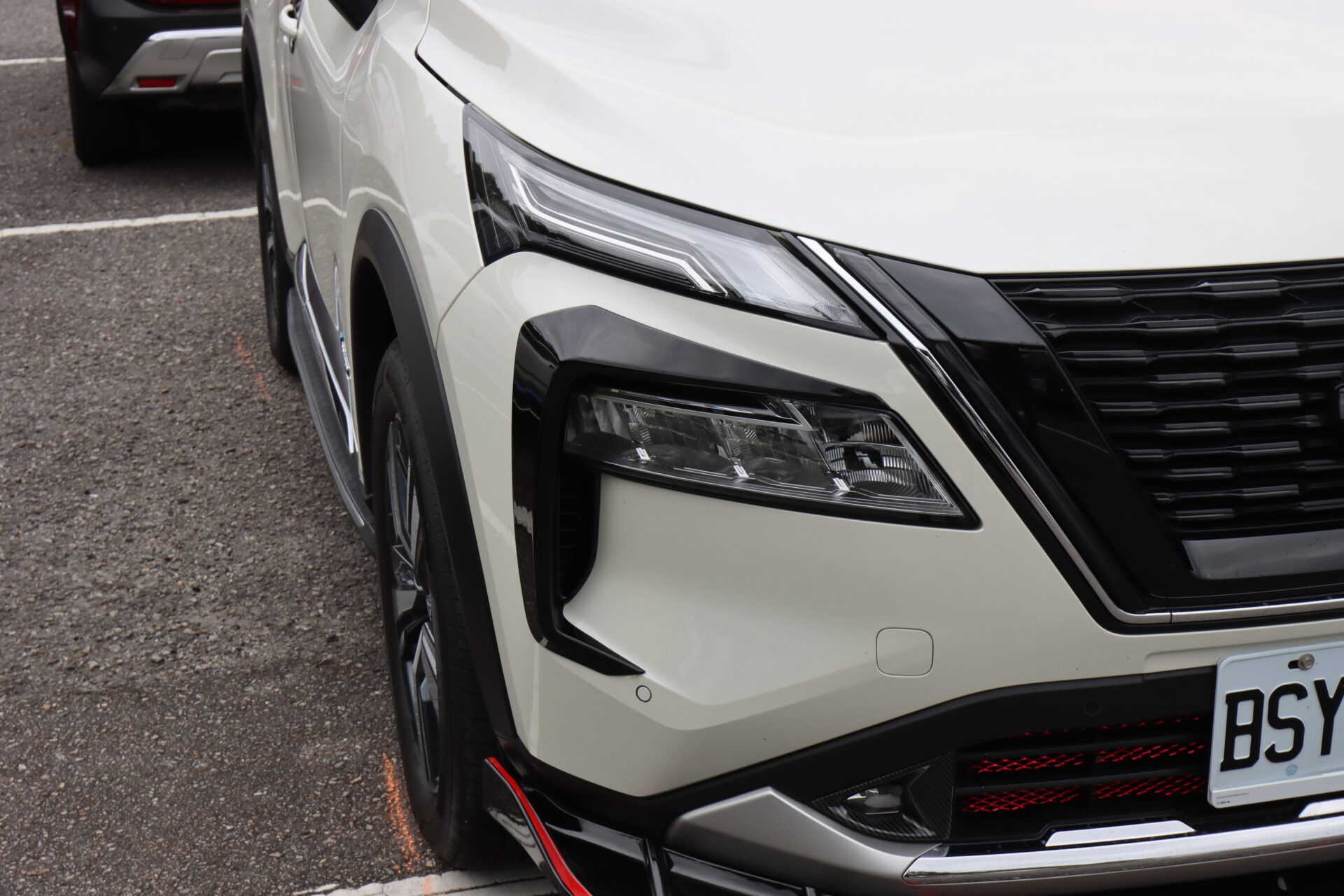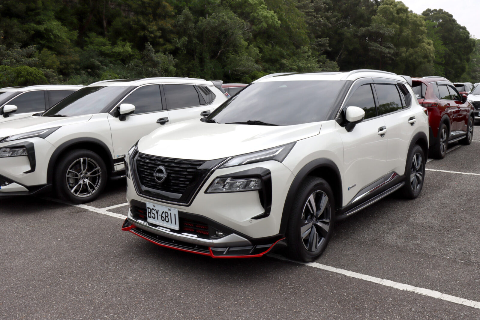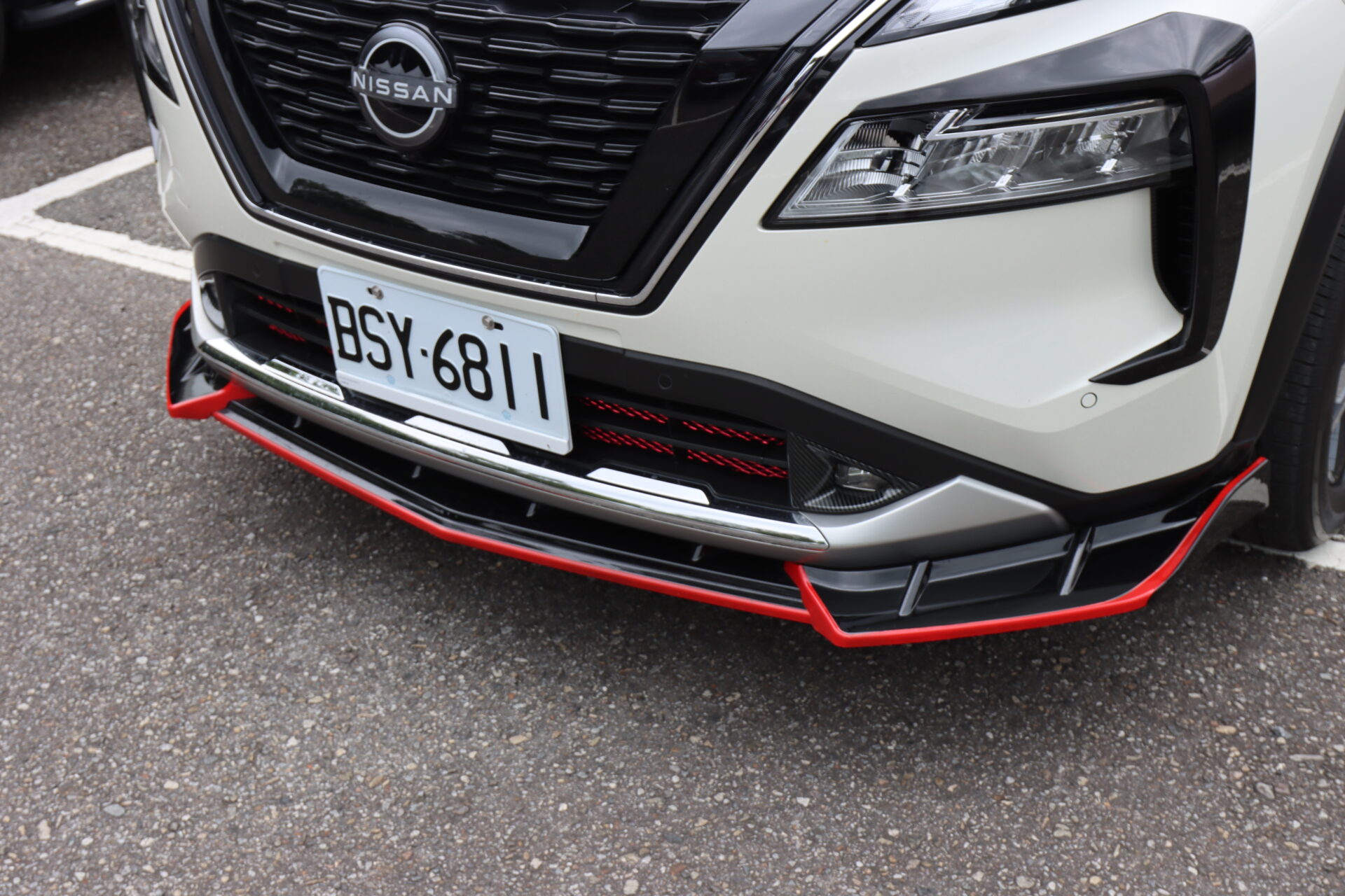 這部紅色X-Trail e-Power,則是換上了日規Xtremex特仕車上才有的前後下擾流,搭配Nismo鋁圈,整部車變得更為粗曠許多,且日規Xtremex特仕車這組空力套件也是要等日本車主換下流出販售,才有機會購得,原廠不單賣。