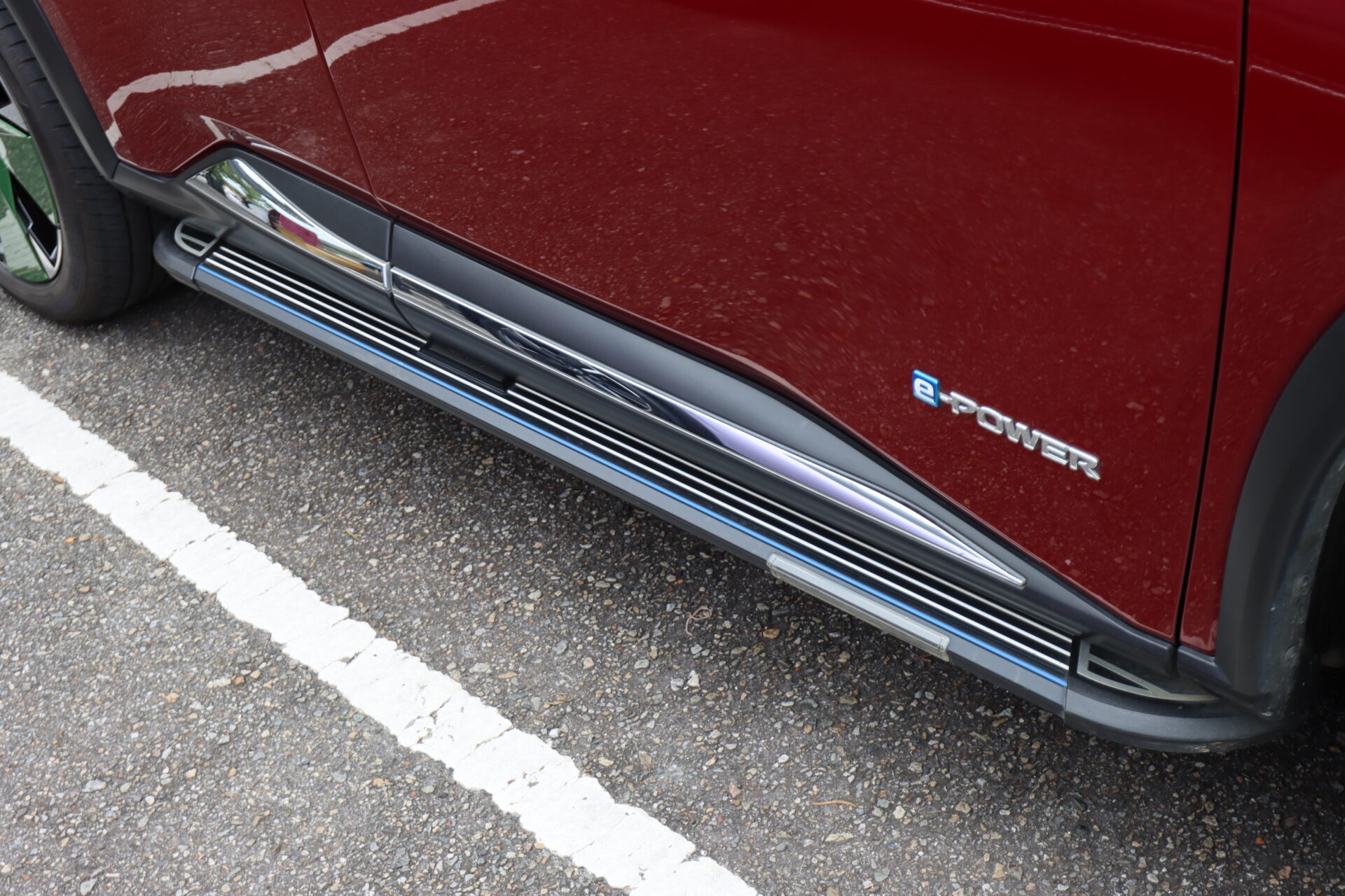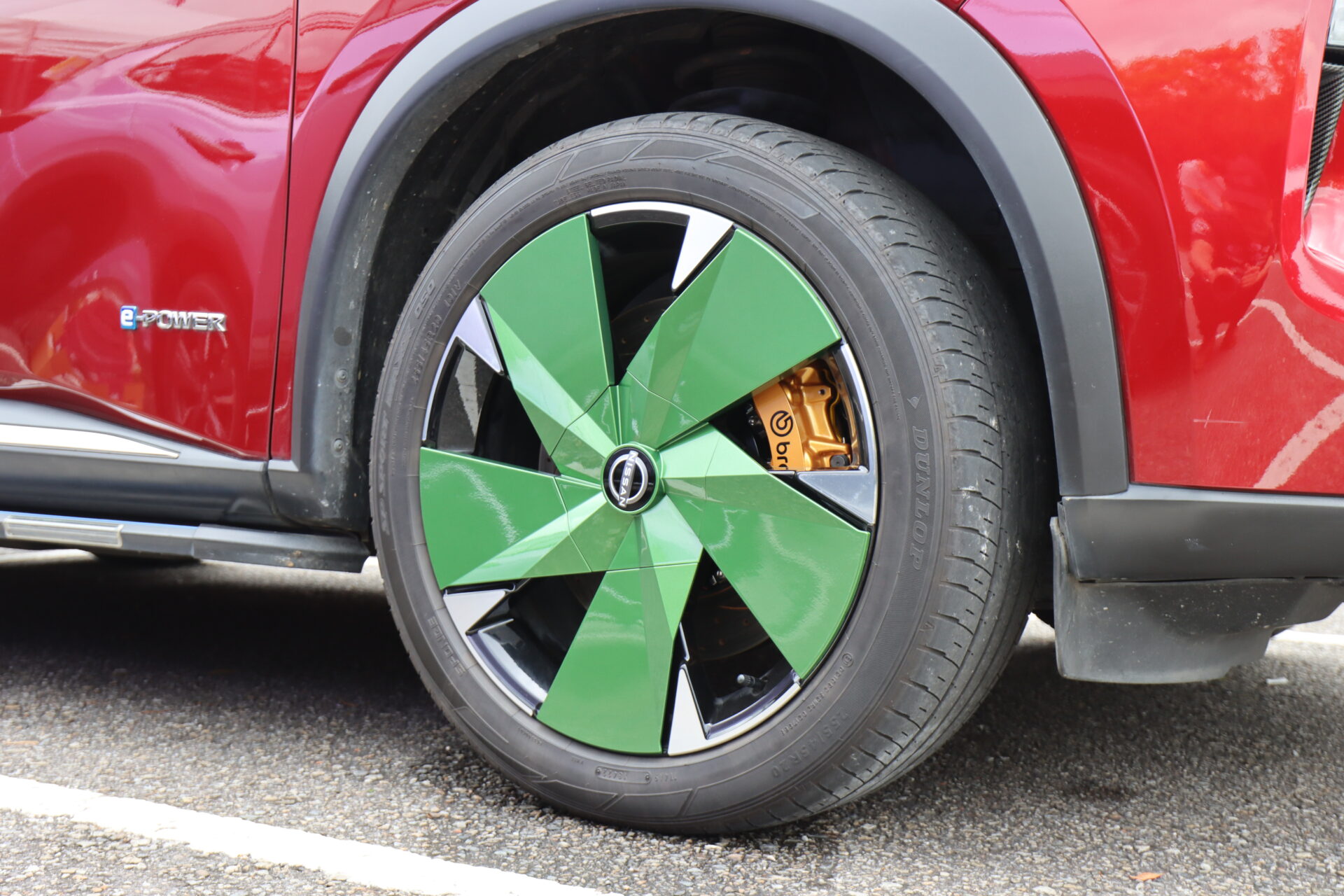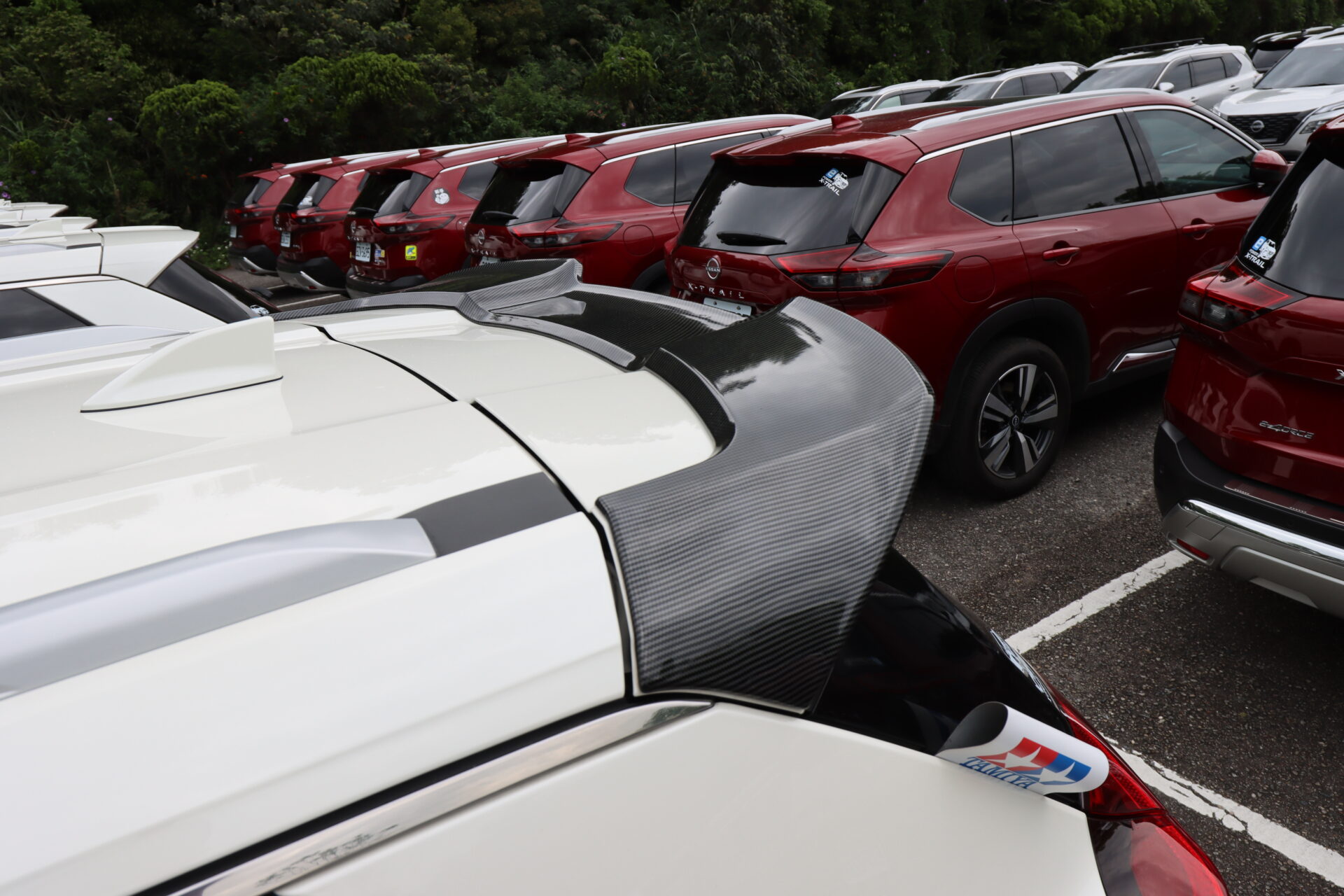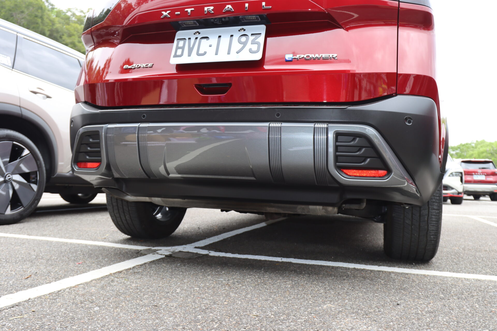 這部紅色X-Trail e-Power,則是換上了日規Xtremex特仕車上才有的前後下擾流,搭配Nismo鋁圈,整部車變得更為粗曠許多,且日規Xtremex特仕車這組空力套件也是要等日本車主換下流出販售,才有機會購得,原廠不單賣。