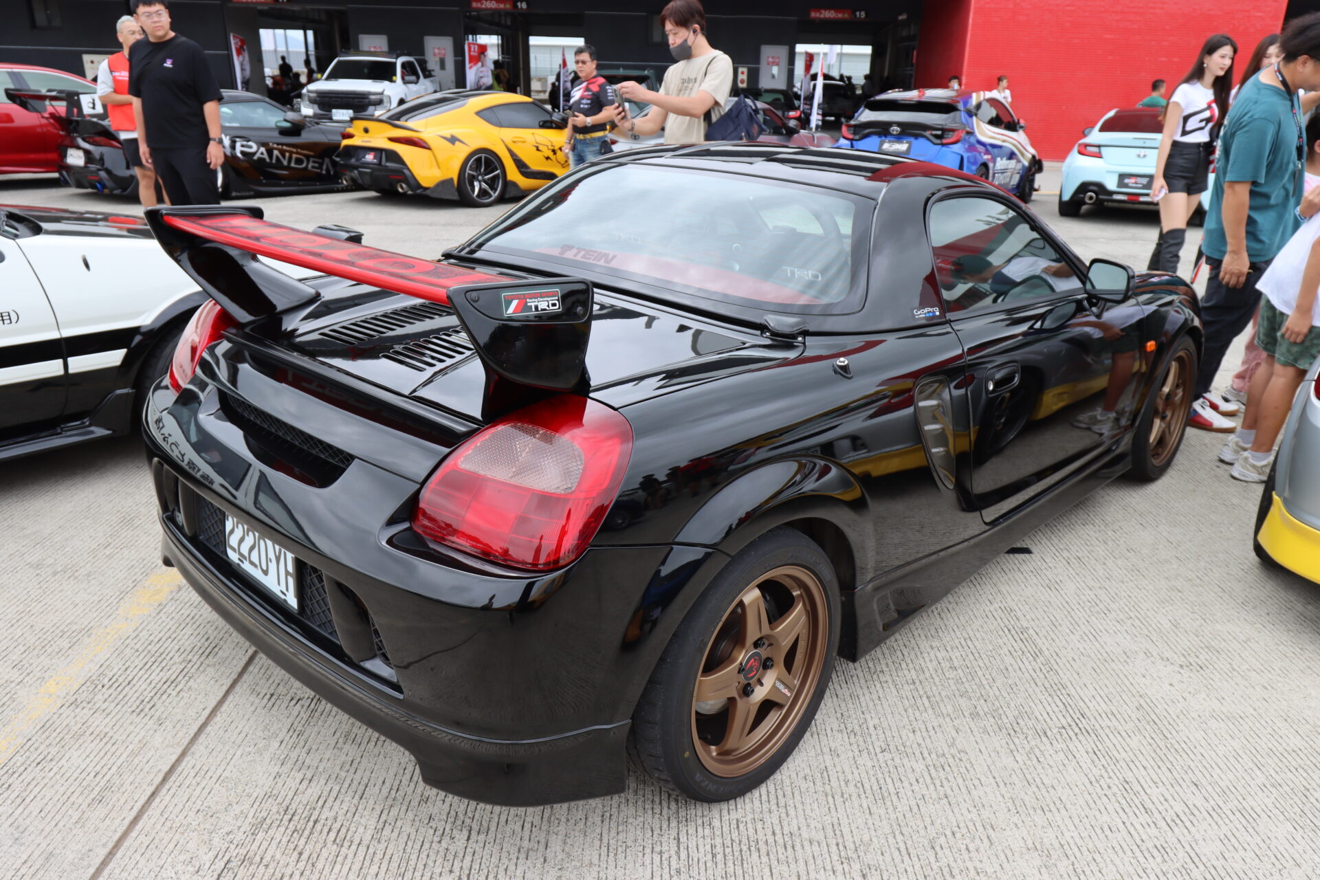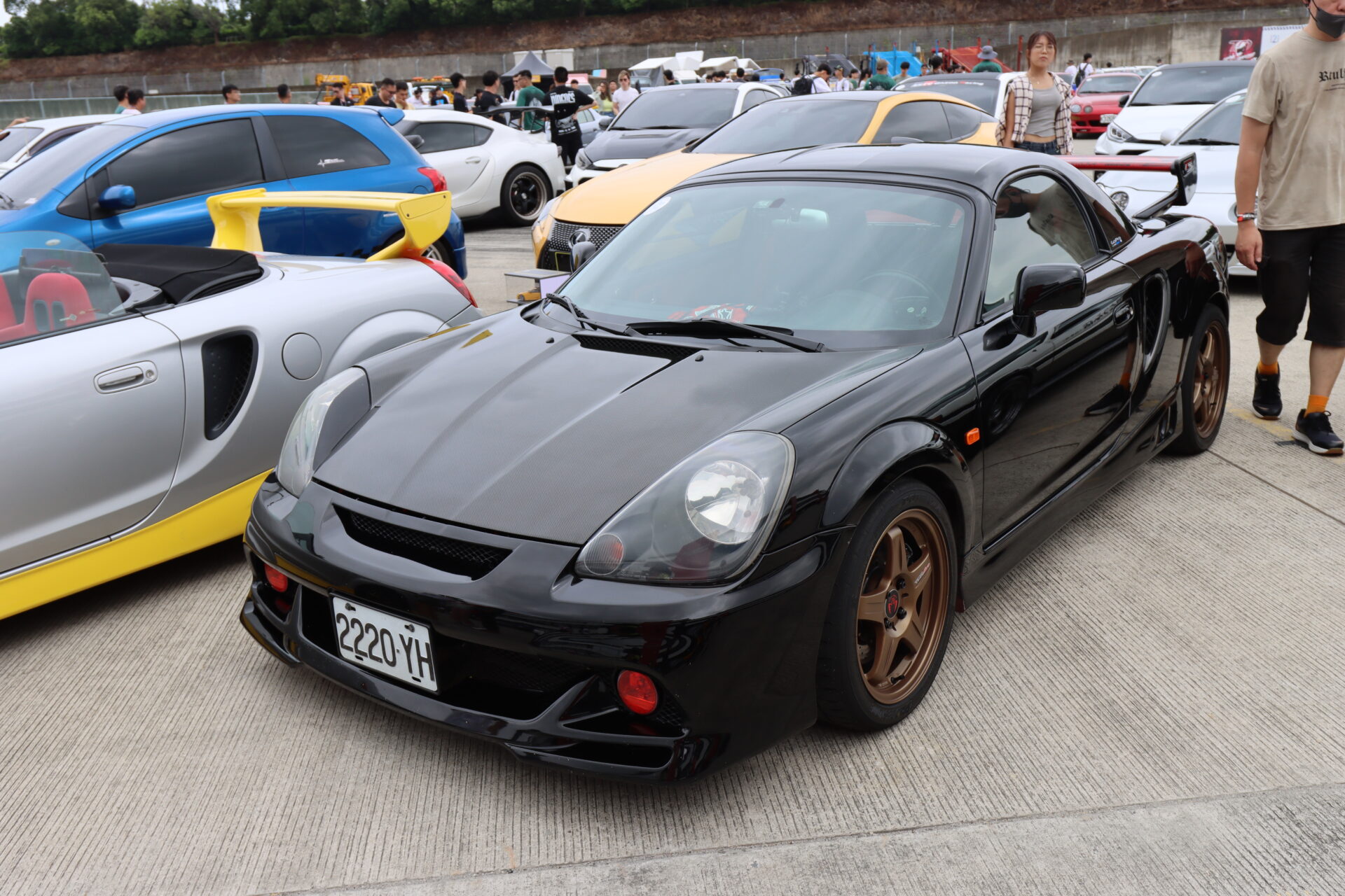這部是第三代Toyota MR2(日本當地改名為MR-S),為中置引擎跑車,搭載的引擎是1.8 NA引擎(跟國產Altis相似),最大可輸出140hp馬力,由於車重只有996公斤,因此零百加速只需6.8秒,不少車主會移植2ZZ-GE引擎,以獲得190hp以上馬力。
