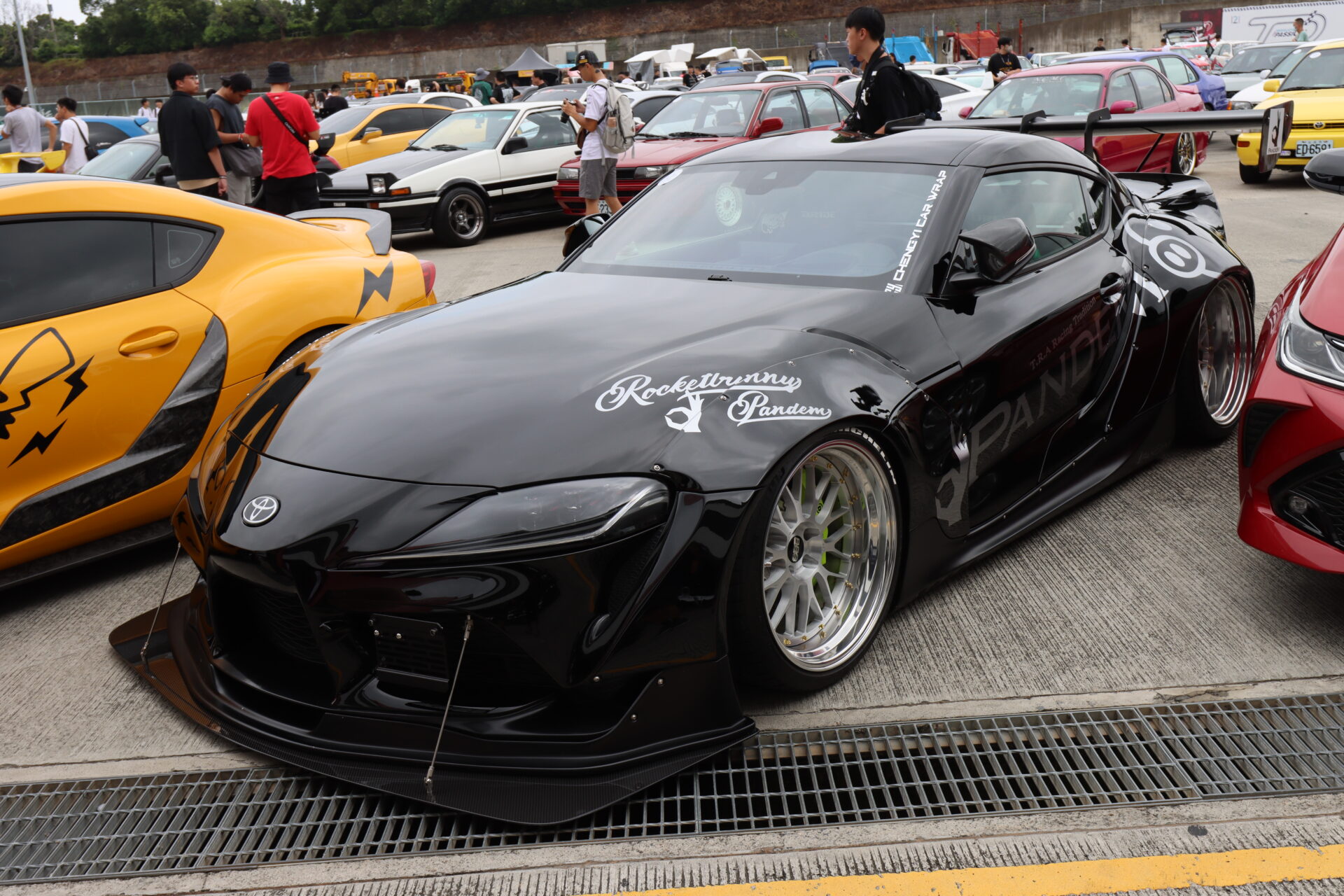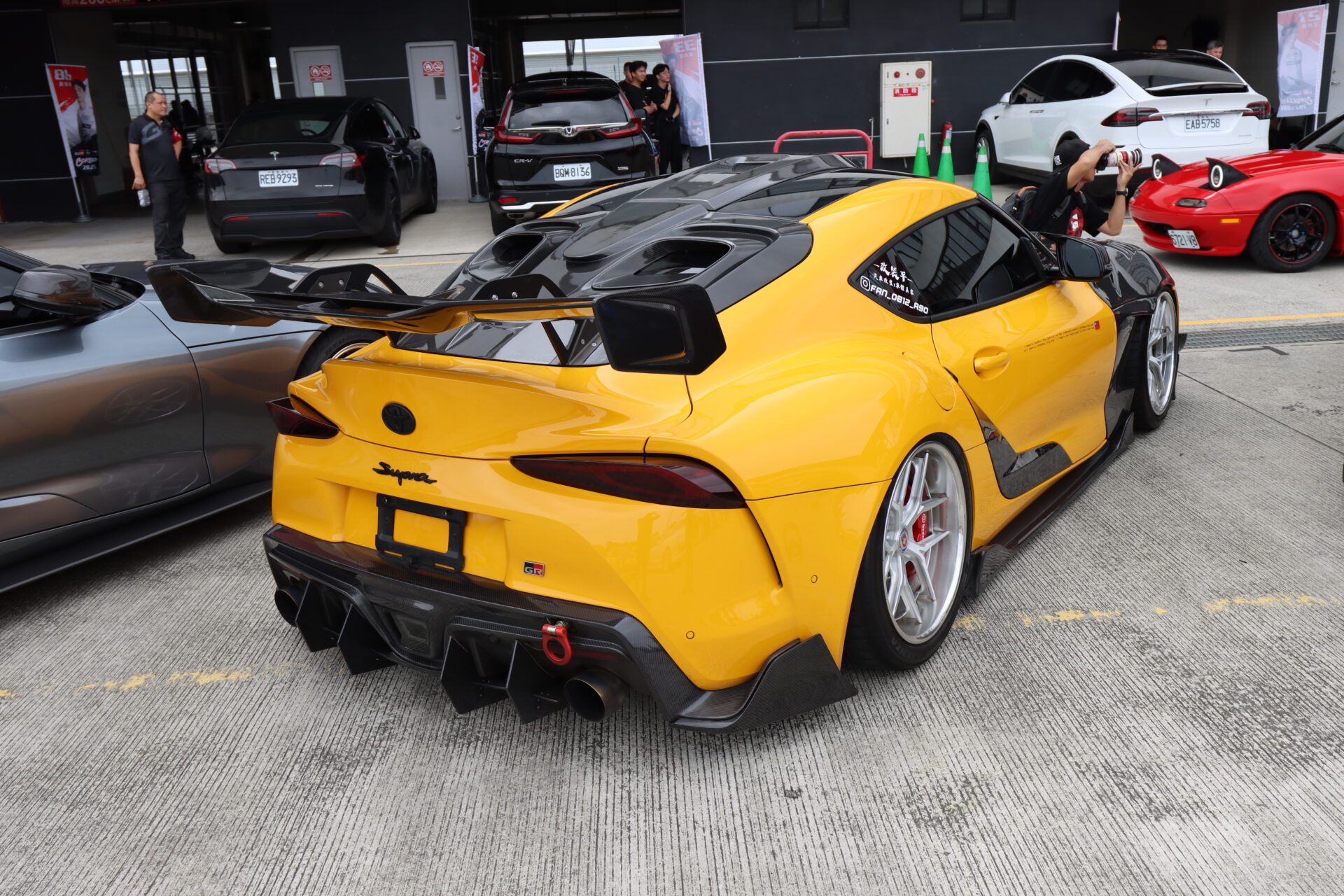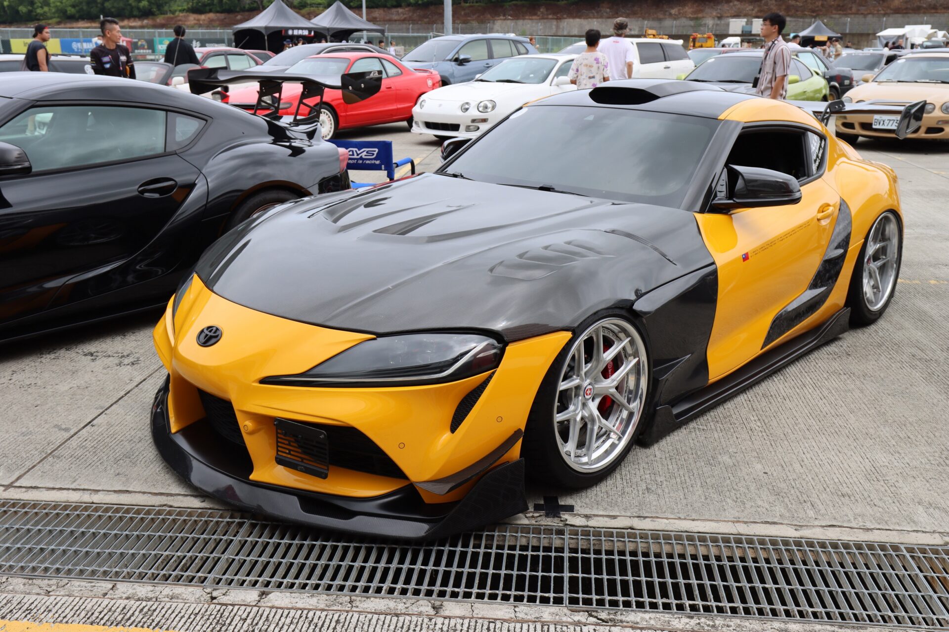 當天活動現場也有多部GR Supra現身,如果排除寬體式樣的話,筆者認為這部黃色車款改裝細節最多,包含引擎蓋、前下擾流、前定風翼、側裙、車門飾板、後擋飾蓋、超大尾翼與後下擾流等,全部都是以相當浮誇的造型呈現,很容易吸引到大家目光。