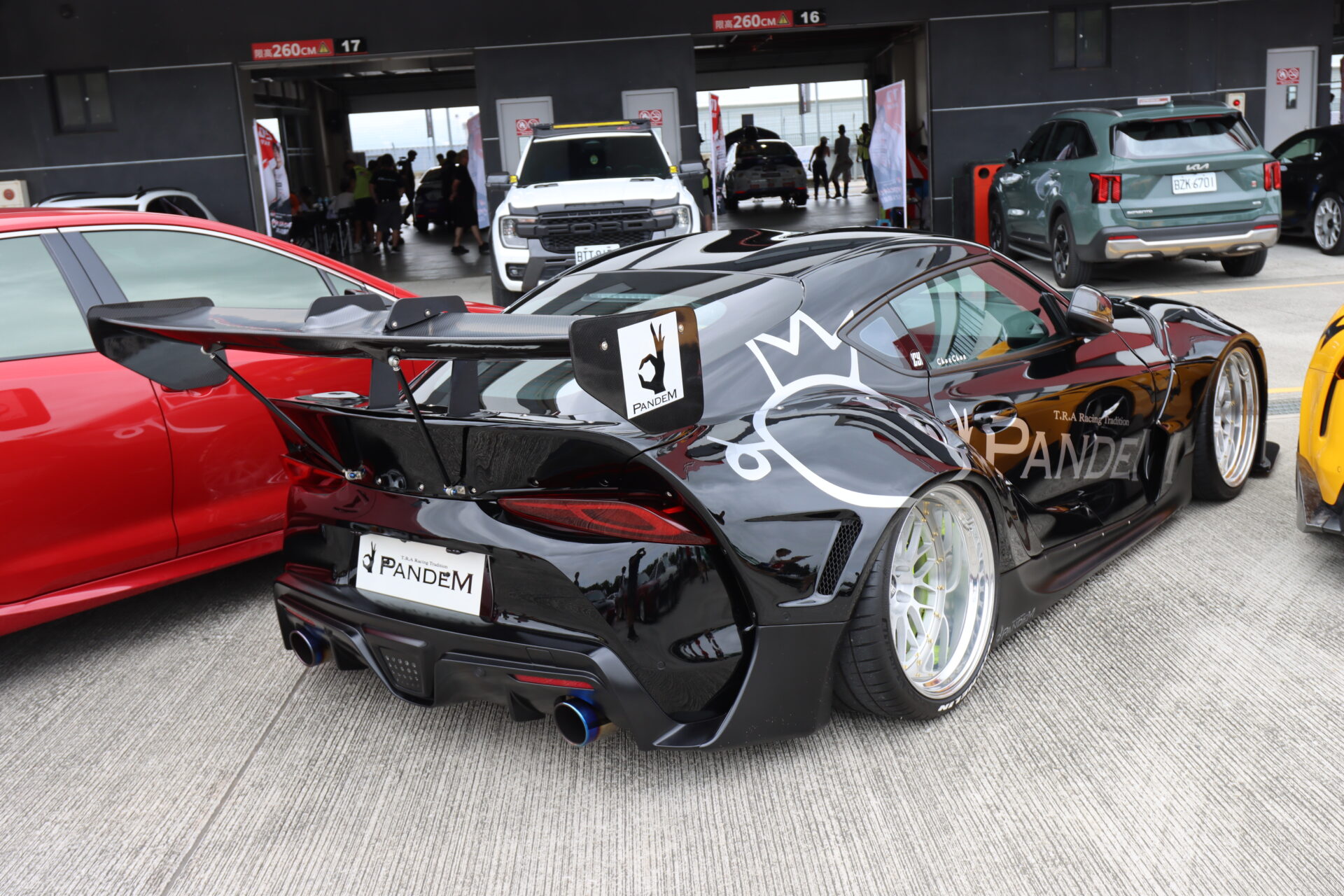 這部採用Rocket Bunny寬體套件的GR Supra,不只遠看出滿氣勢,近看很多節縫處的細節也都處理得很好,車尾大尾翼更是將整部車的霸氣提升到極緻。