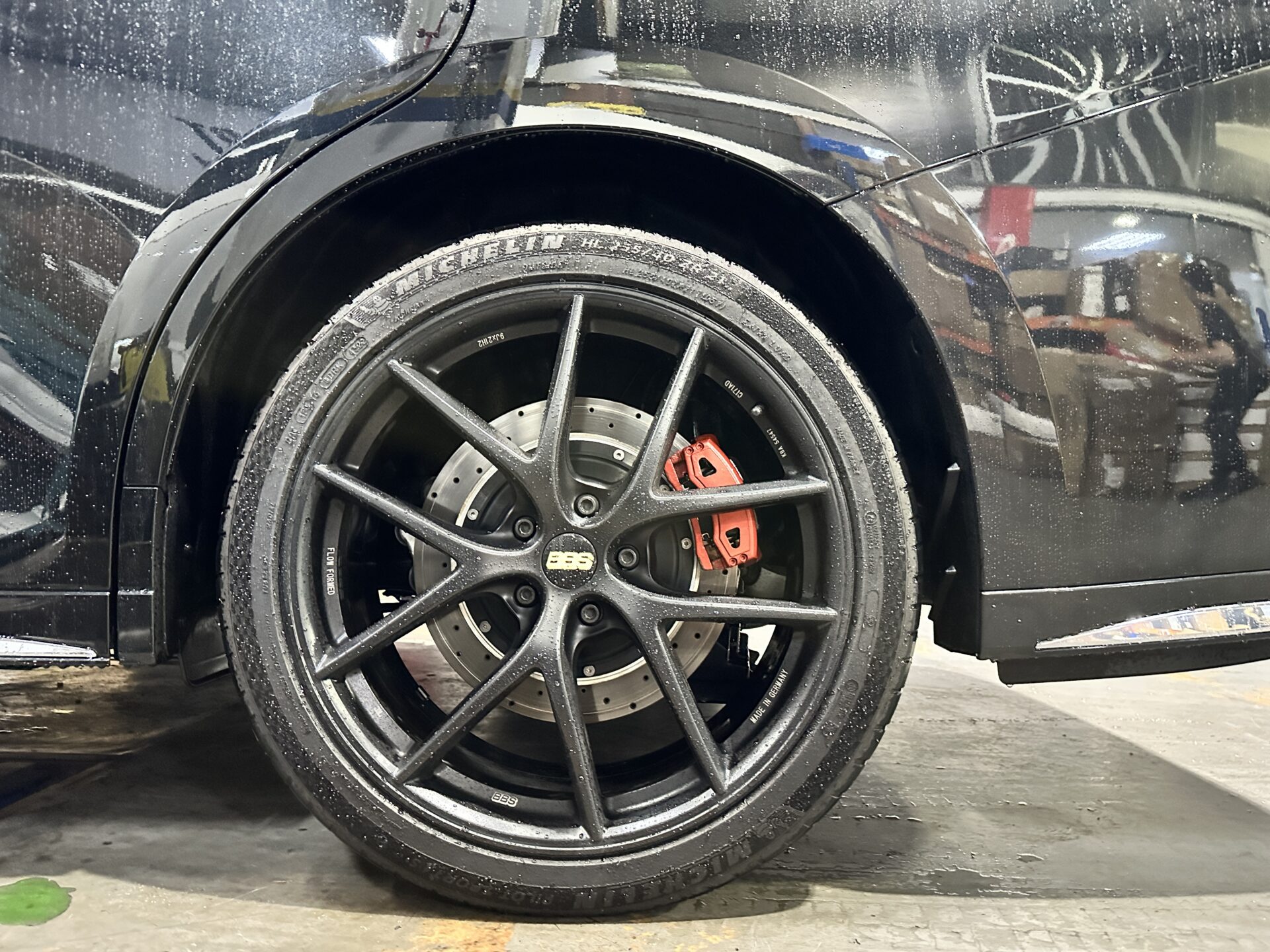 而原廠雖然配置電子阻尼懸吊,不過阻尼軟硬的感受上,似乎變化不大,即使在Sport模式下,避震器的作動依然偏軟,開快通過不平路面時,車體搖晃情況頗為明顯,有時甚至出現四支避震器輪前後左右輪流晃動的「蹺蹺板」情況,這樣也容易造成乘客暈車問題,因此這部車的車主才會想要改善避震器的阻尼狀況。