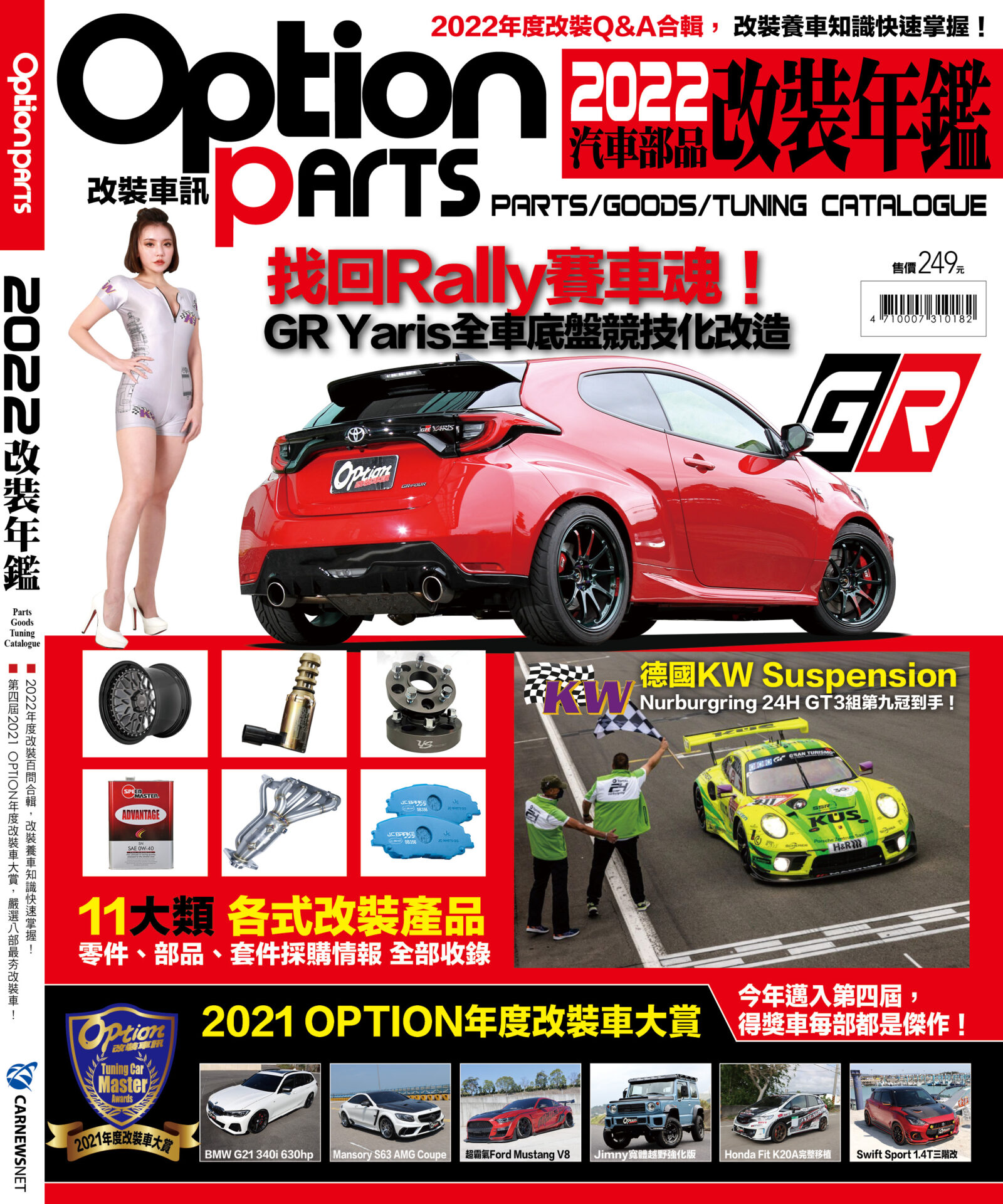 2022改裝年鑑改裝年鑑哇!沒想到OPTION改裝年鑑已經邁入第21年了,筆者依稀記得是從2002年開始注意到這本雜誌,從2004年開始成為製作團隊到現在,每年到了歲末季節,就是編輯改裝年鑑的事後,這本當初以介紹汽車改裝零配件為主的刊物,21年後我們依舊秉持著這樣的精神與初衷,持續發行這本雜誌,讓讀者能快速獲得最新的改裝套件與知識,也讓品牌商能有一個紙本平台,完整呈現最棒的改裝產品給大家認識,讓車主與廠商都能各自獲得所需的資訊。