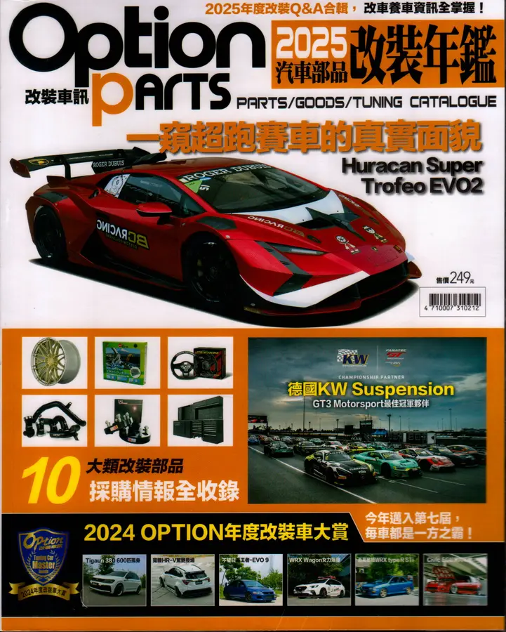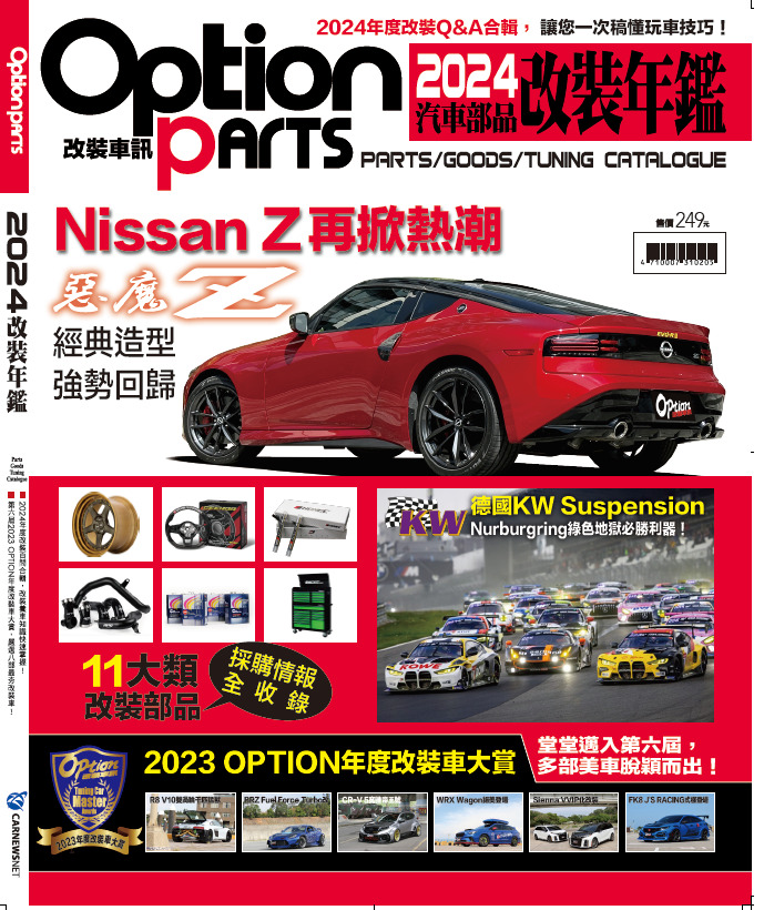 2024改裝年鑑改裝年鑑今年的OPTION 改裝年鑑已經邁入第23 年了,筆者依稀記得是從2002 年 開始注意到這本雜誌,從2004 年開始成為製作團隊到現在,每年到了歲末季節,就是編輯改裝年鑑的事後,這本當初以介紹汽車改裝零配件為主的刊物,23 年來我們依舊秉持著這樣的精神與初衷,持續發行這本雜誌,讓讀者能快速獲得最新的改裝套件與知識,也讓品牌商能有一個紙本平台,完整呈現最棒的改裝產品給大家認識,讓車主與廠商都能各自獲得所需的資訊。