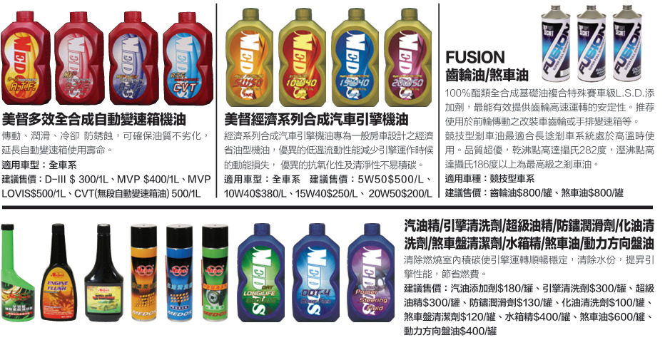 美督股份有限公司成立於 1990 年,以代理歐洲法國Unil高品質合成機油,及新加坡利德石油(NICOR),進而代理美國航太工業中太空總署授權發展新科技之潤滑油品製造商與美國軍方指定使用之潤滑油品製造商-AOCLSC所生產製造之Medos潤滑油。2001 年美督(股)公司與日本改裝界領導者TopSecret簽訂合約,擁有獨家代理權,並且引進其先進想法和概念,成立美督Fast track 事業部專門生產高品質改裝車用潤滑油,適合於一般房車使用之最高級潤滑油品。